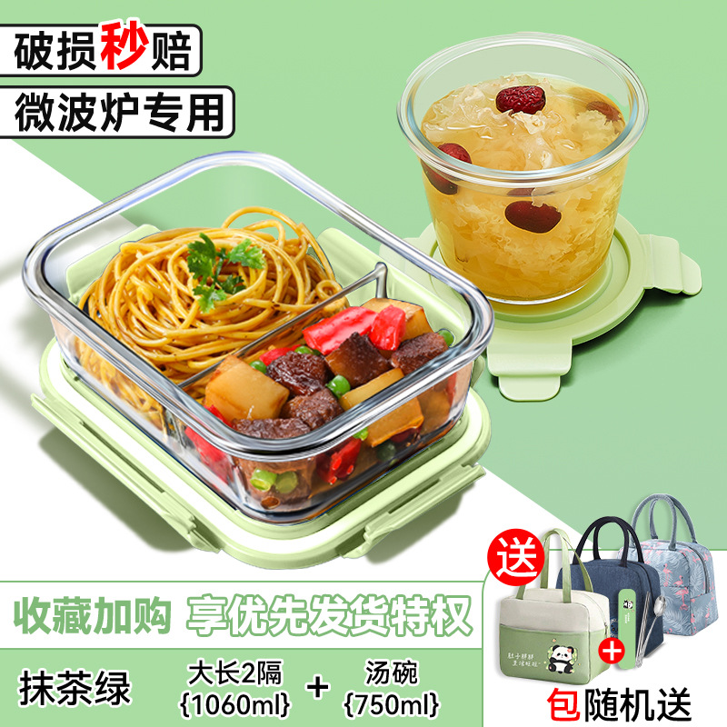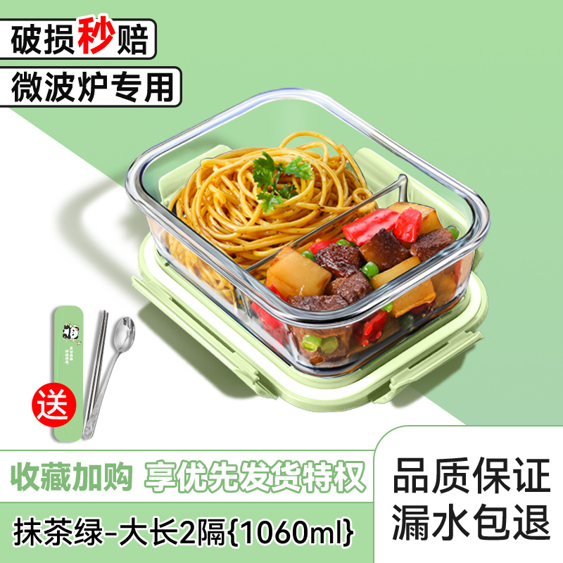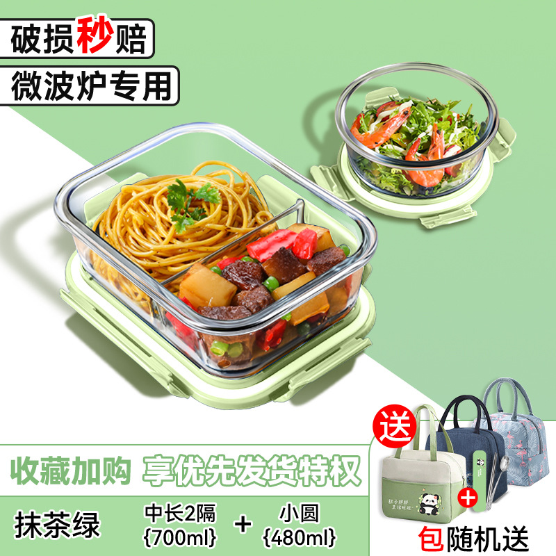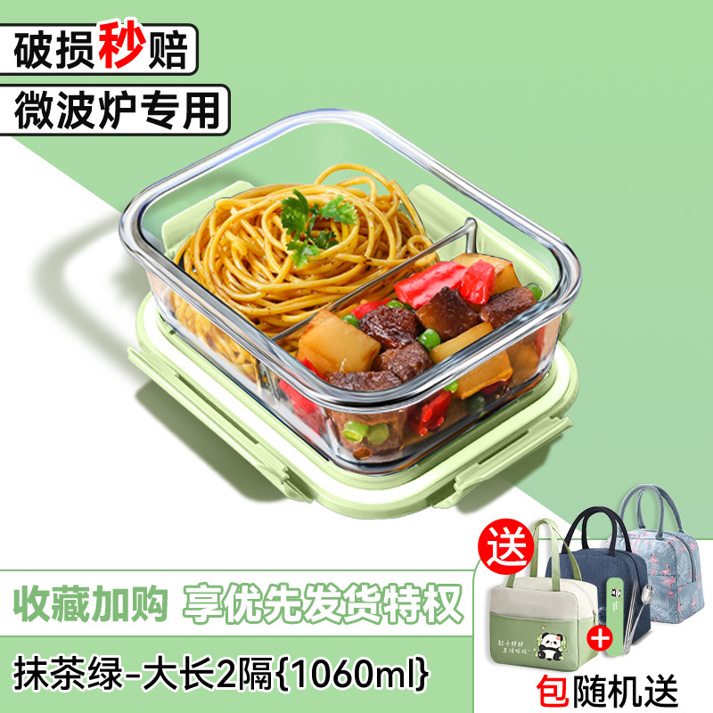 39_Зеленый матча-большой длинный, две перегородки 1060+ длинный без перегородок 700+ круглый 480 [бесплатная посуда с термосумкой]