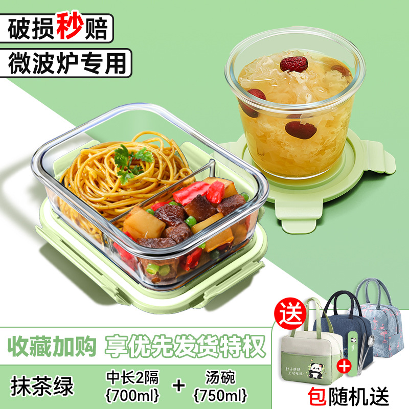 38_Зеленый матча-длинный, два отделения 700 мл + суповая тарелка 750 мл [бесплатная посуда с термосумкой]