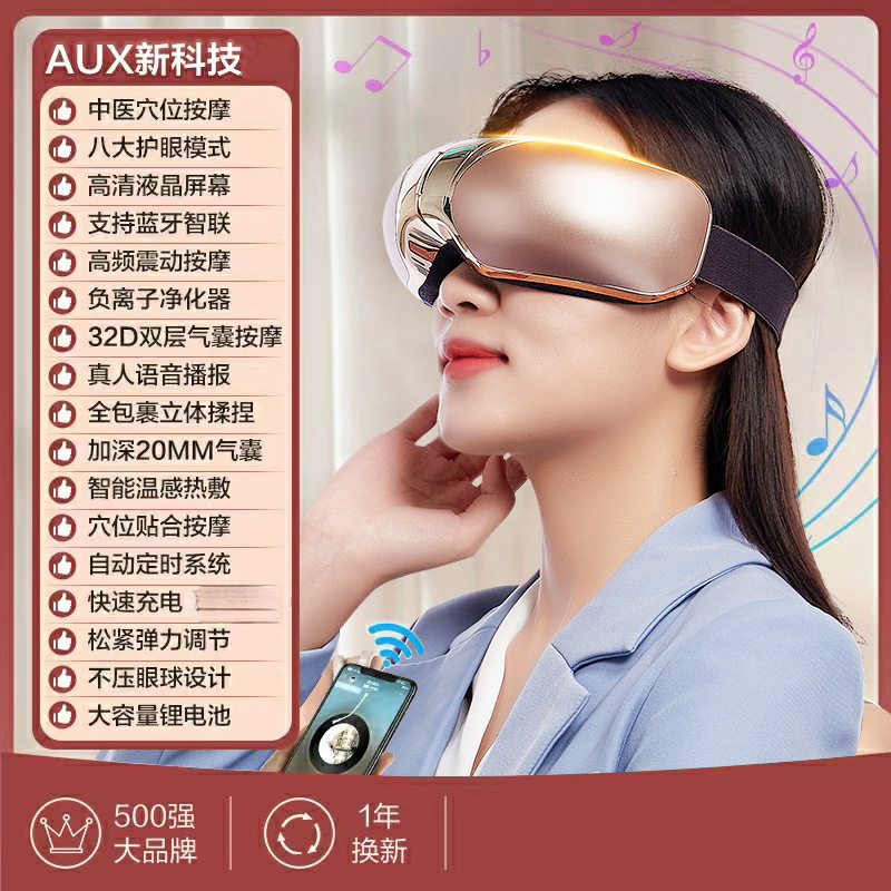 [Двойное распыление] Вибрационный массаж акупунктурных точек традиционной китайской медицины + горячий компресс постоянной температуры + 5 режимов массажа + 3 основные функции распыления + 16 массажных головок + музыка Bluetooth + можно добавить глазные капли