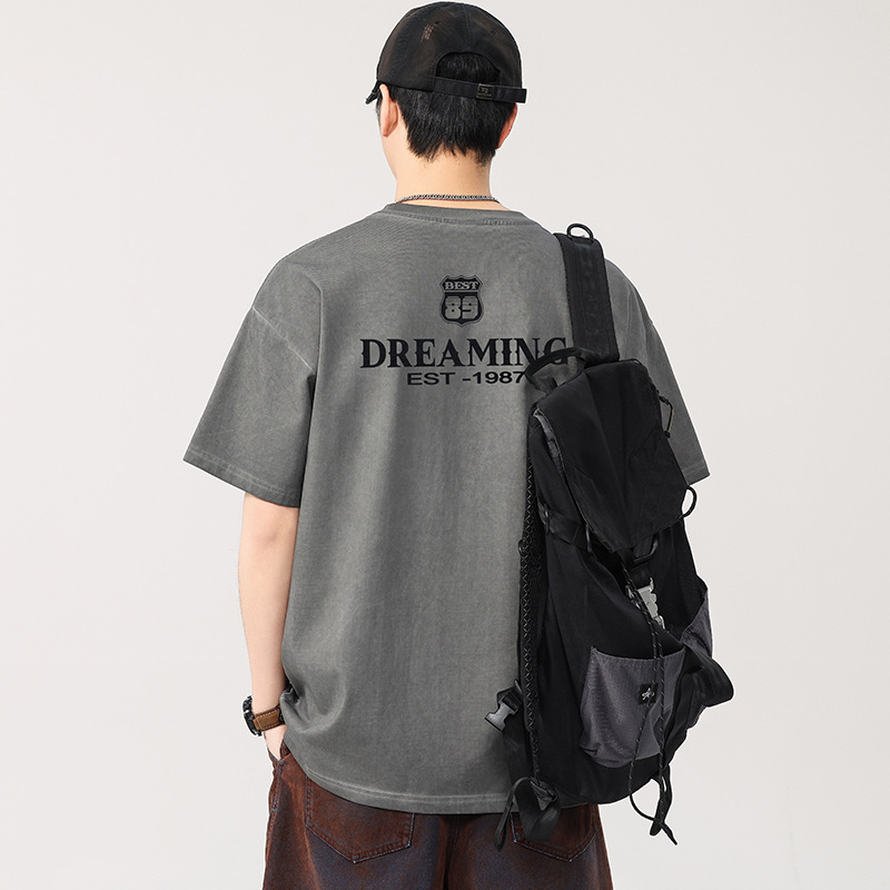 T3728 | Большой размер мужская одежда лето новый 280g тяжелый прилив печатная футболка мужская свободная грязная стирка ретро с короткими рукавами