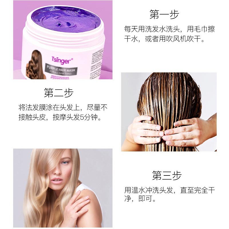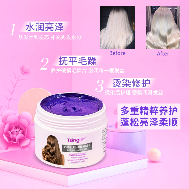 Маска для волос Tsinger Purple Hair Mask для восстановления сухих и вьющихся волос [Эксклюзивно для трансграничных продаж] Увлажняющая