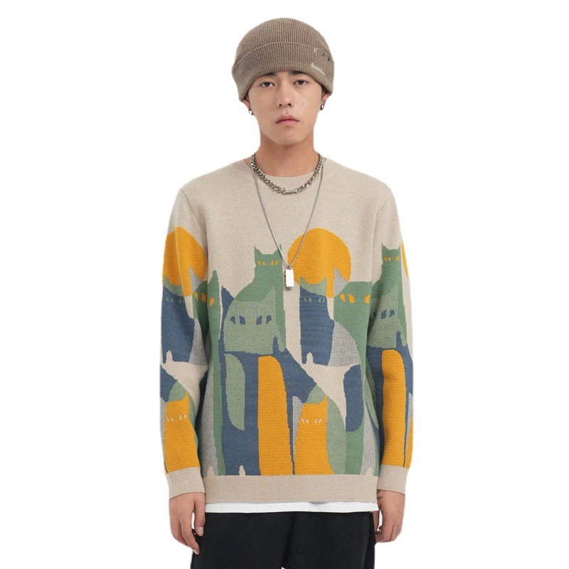 Главная страница > 2022 осень-зима, новый национальный модный свитер с мультяшным котом, мужской и женский свободный модный брендовый вязаный свитер, Базовая куртка для пар