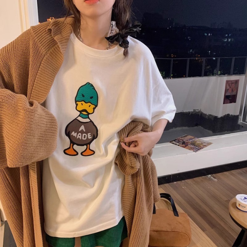 Главная страница > 2024 летом хлопчатобумажная белая футболка с короткими рукавами, утка с короткими рукавами весной и осенью