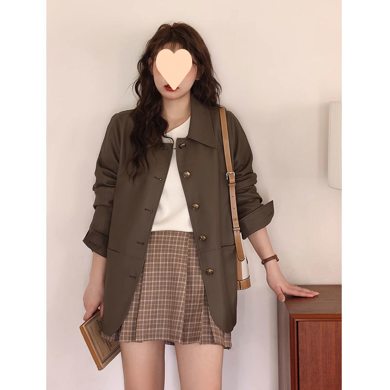 Главная страница > Коричневая кожаная куртка женская весна-осень 2025 новый стиль Гонконг ретро мотоциклетная высококачественная свободная повседневная кожаная куртка