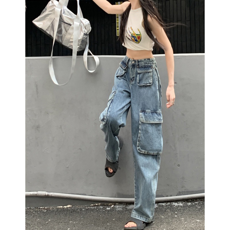Главная страница > Женские широкие джинсы больших размеров для девочек, Свободные повседневные прямые широкие штанины с карманом в американском стиле ретро, джинсы до пола