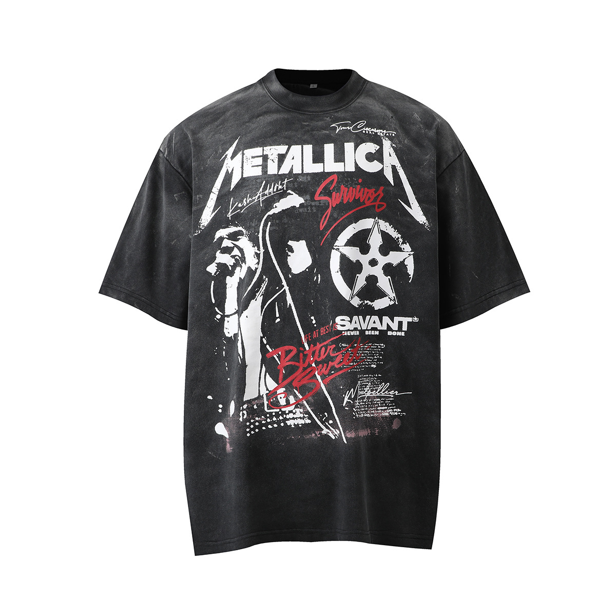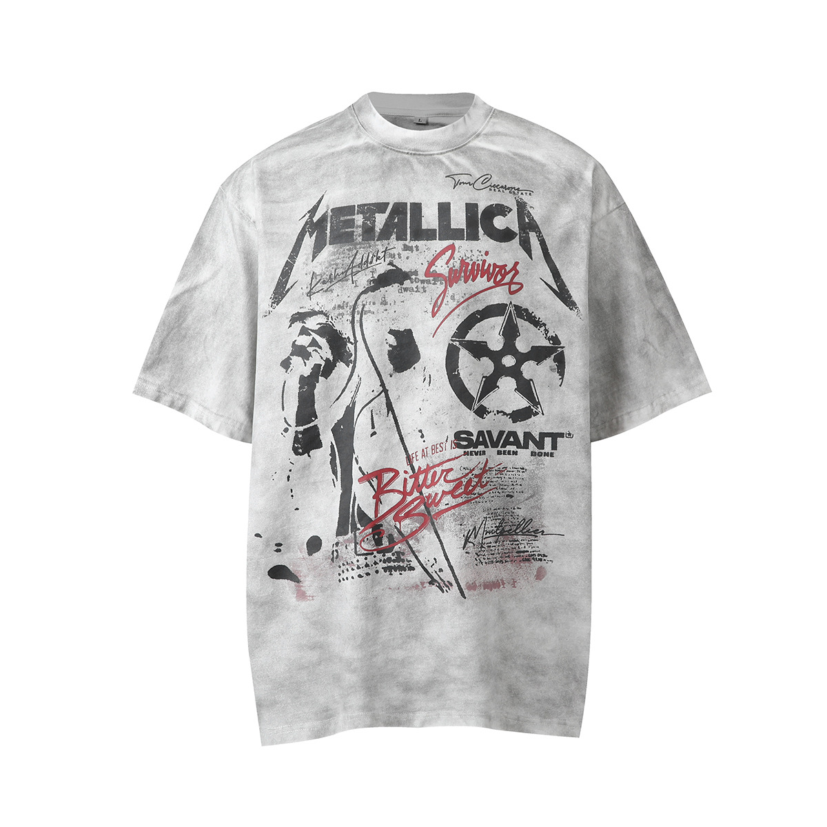 Главная страница > Jia Yi Library Мужская одежда 2024 Американский Ретро прилив Футболка с короткими рукавами свободная грязная краска старая рок-уличная футболка