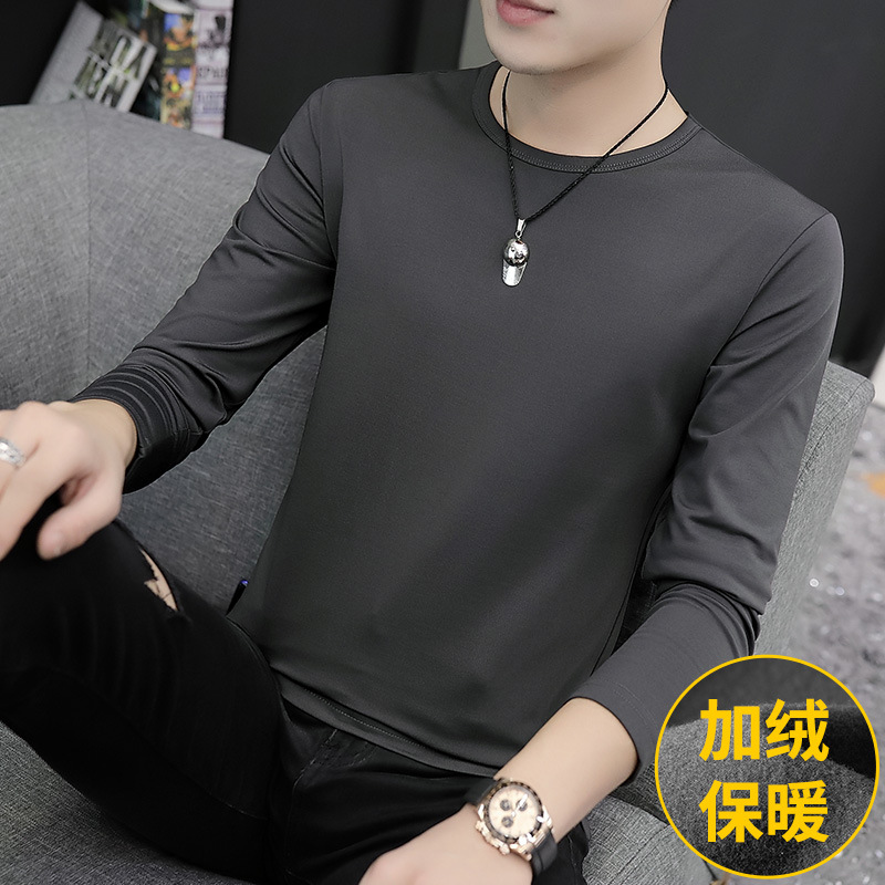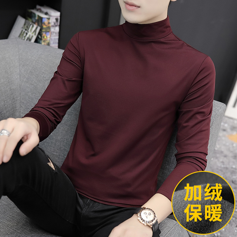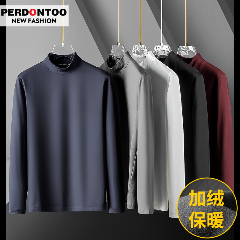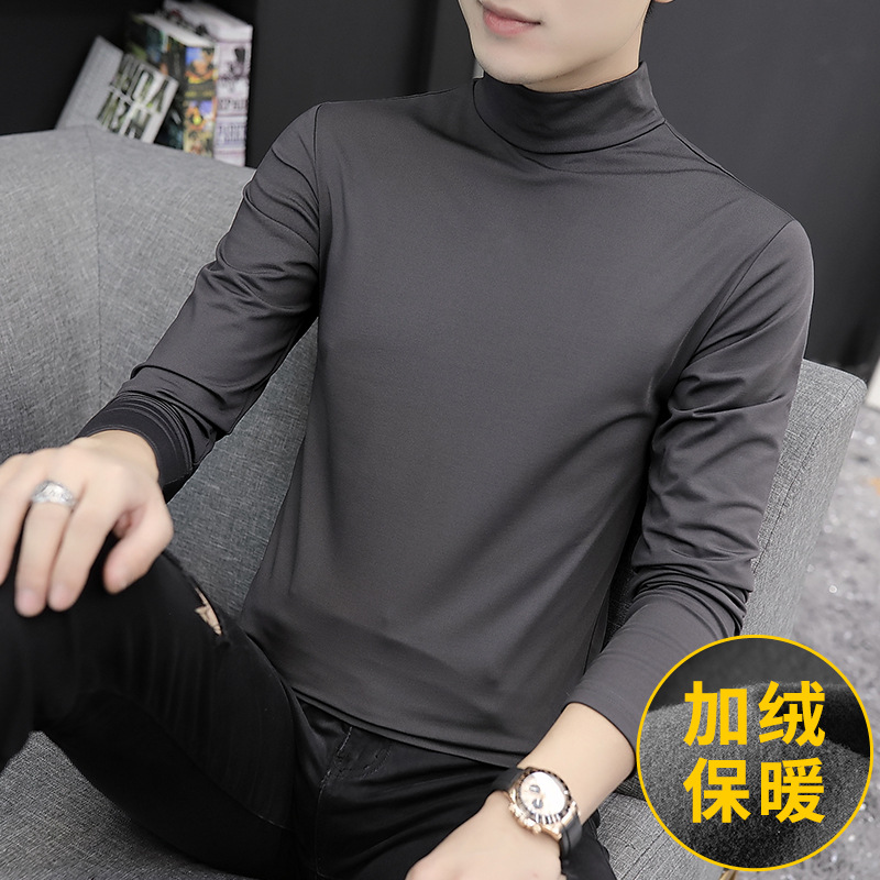 Главная страница > Мерсеризованная бархатная Мужская рубашка Боби с коротким воротом, однотонная осенне-зимняя футболка с длинным рукавом внутри, топ со средним воротником на флисовой подкладке