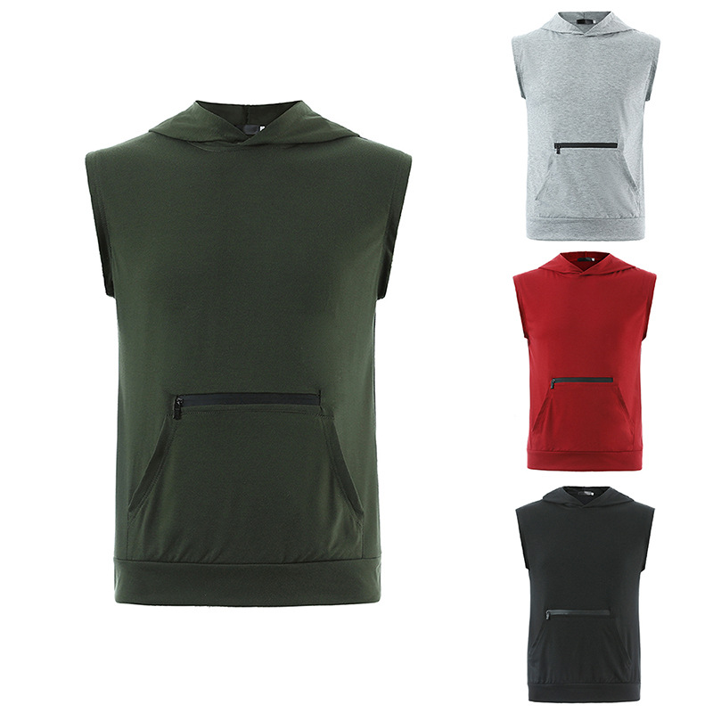 Главная страница > 2022 Amazon Летний Новый мужской однотонный жилет без рукавов с капюшоном, Модный повседневный спортивный топ больших размеров