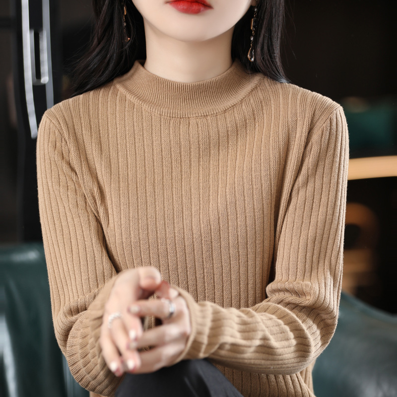 Главная страница > Вязаный свитер из 100% хлопка, женский новый свободный свитер с высоким воротом, удобный внутренний свитер с круглым вырезом, теплая нижняя рубашка, Топ