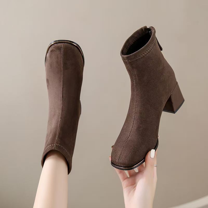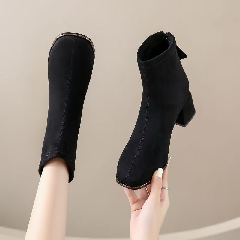 Матовые замшевые короткие сапоги женские 2024 осенние и зимние новые сапоги толстые каблуки бархатные черные женские тонкие сапоги