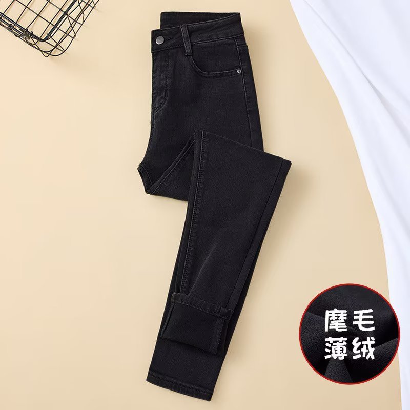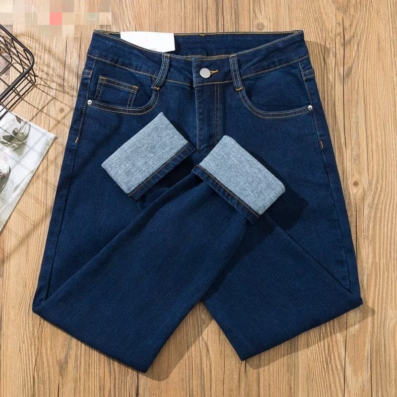 Главная страница > 2024 корейские осенние и зимние новые скрепы плюшевые джинсы женские высокие талии тонкие эластичные тонкие брюки-карандаш
