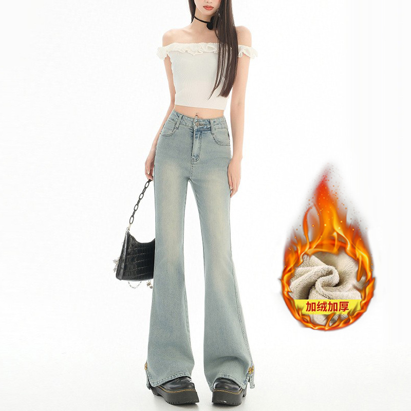 Главная страница > Женские джинсы больших размеров 100kg с высокой талией, стройнящие, эластичные, расклешенные, с флисовой подкладкой, разрезами и очень большим размером.
