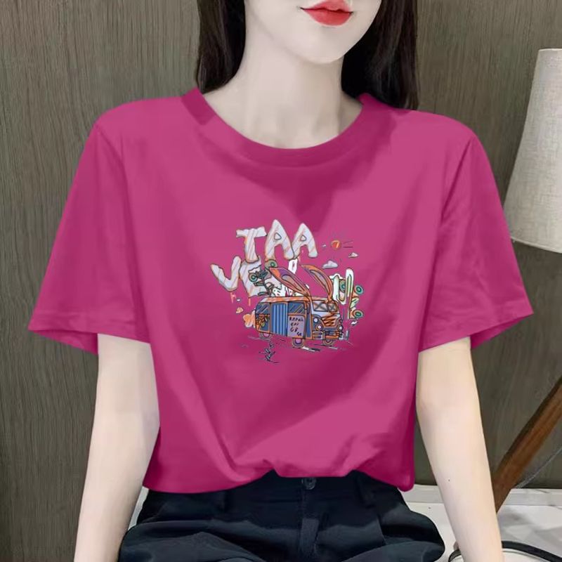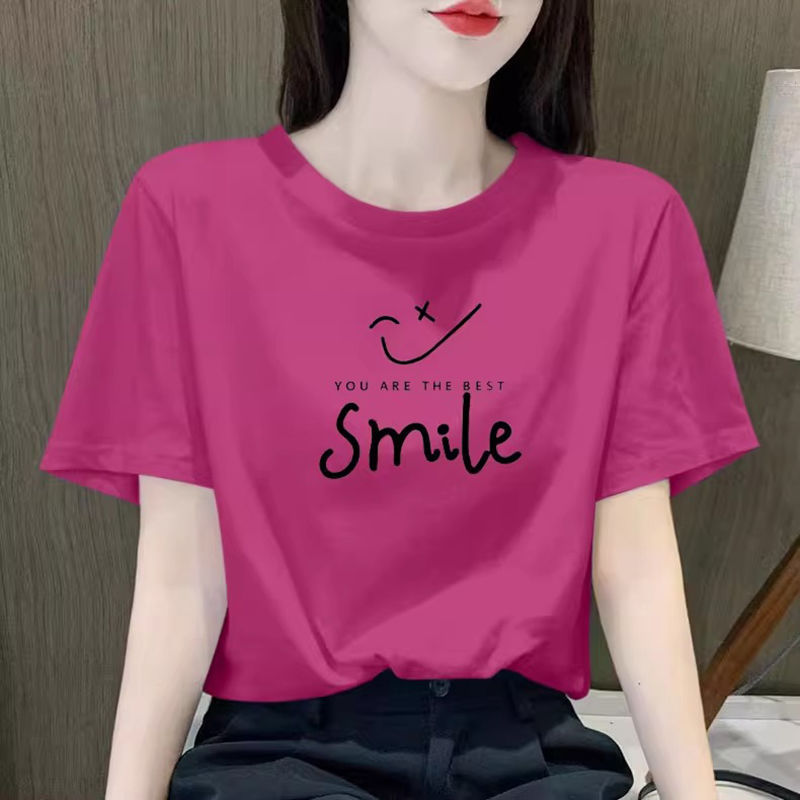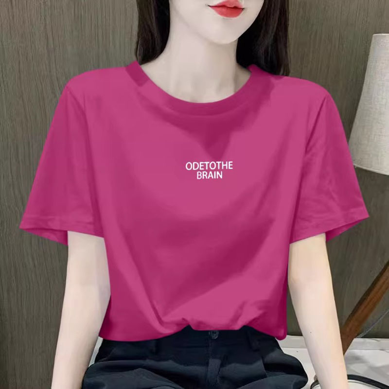 Главная страница > 2024 весна лето новая корейская розовая красная футболка женская рубашка с короткими рукавами на плече