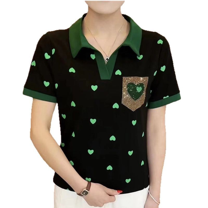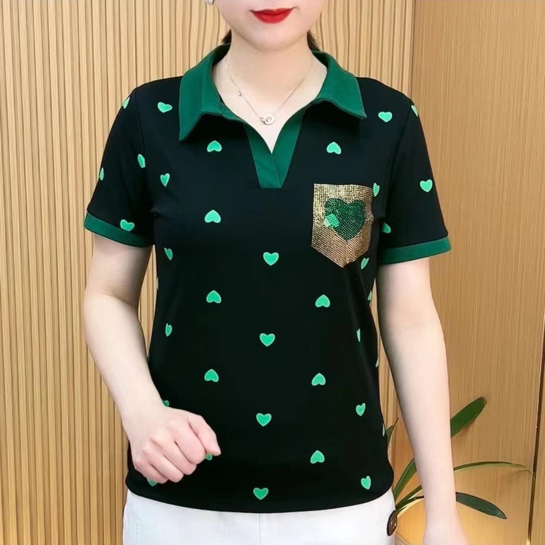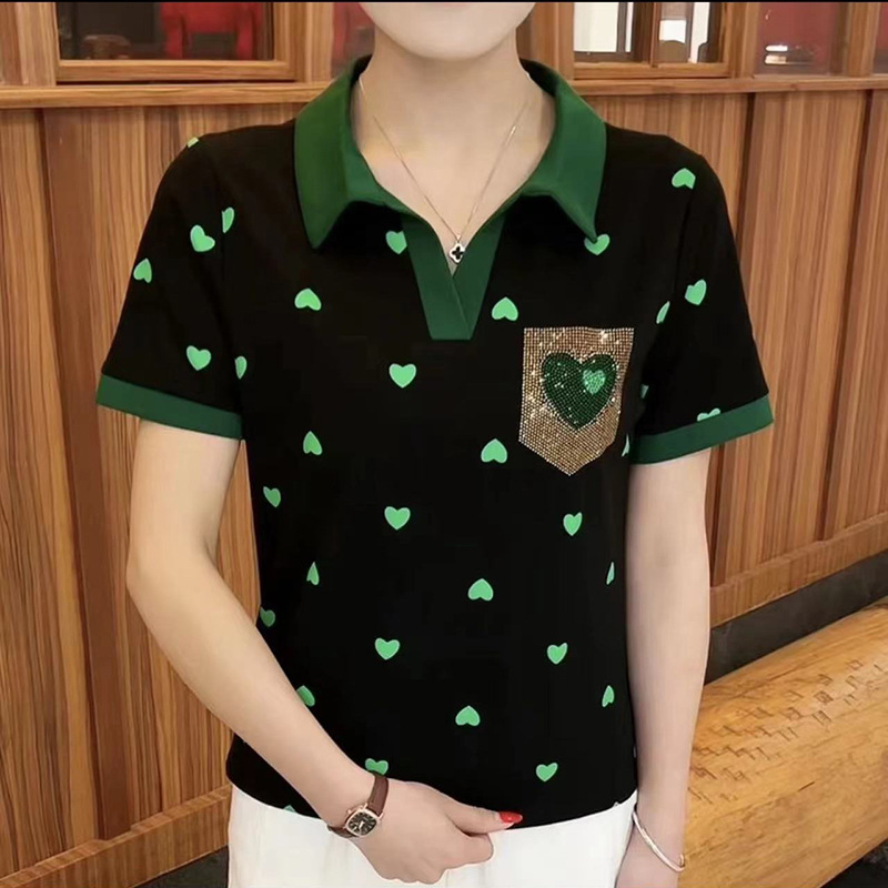 Главная страница > Трансграничная футболка женская рубашка с короткими рукавами лацкана летом новый дикий костюм мамы, чтобы покрыть живот темперамент