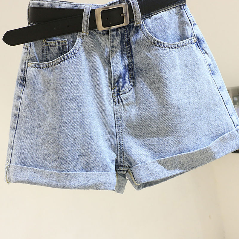 Главная страница > Светло-голубые рулонные джинсовые шорты женские летние 2024 новые большие размеры свободные тонкие и носить широкие шорты
