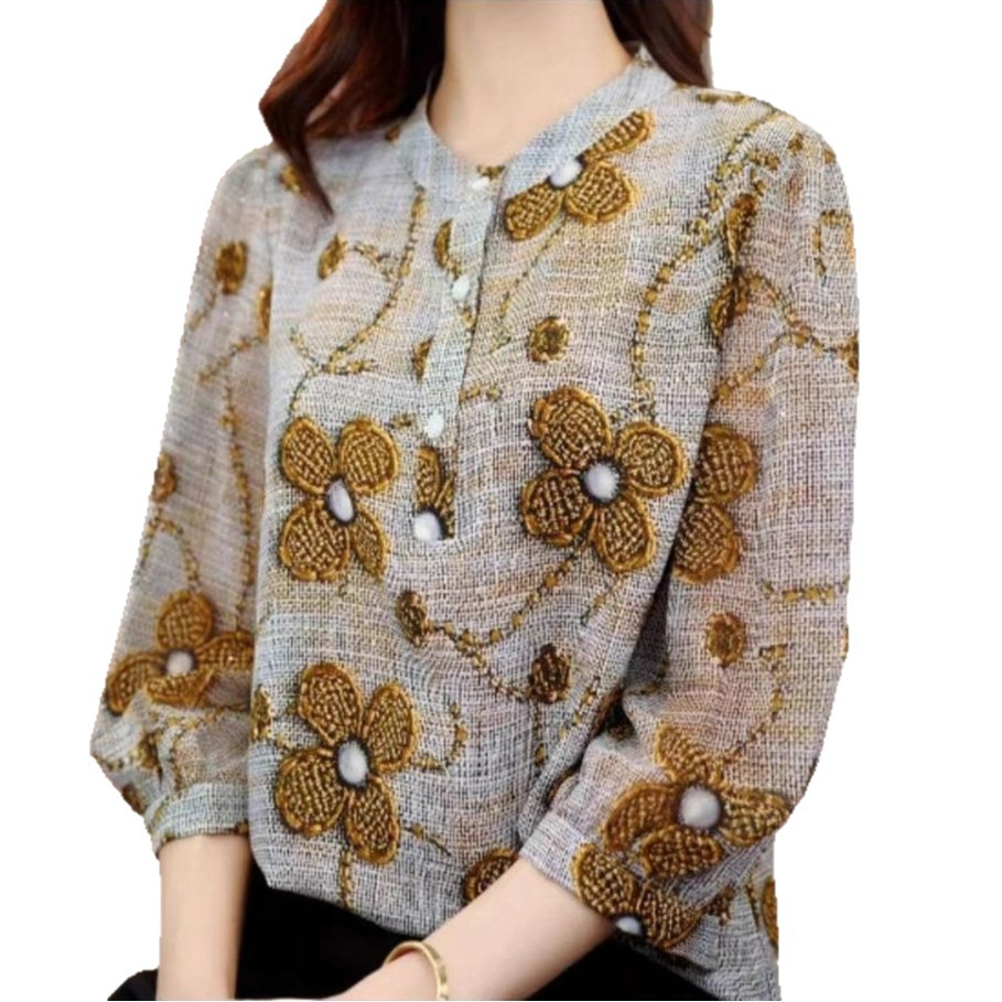 Главная страница > Популярная женская рубашка с круглым вырезом и рукавом три четверти, лето 2025, новый стиль, универсальный топ в иностранном стиле, уменьшающий возраст