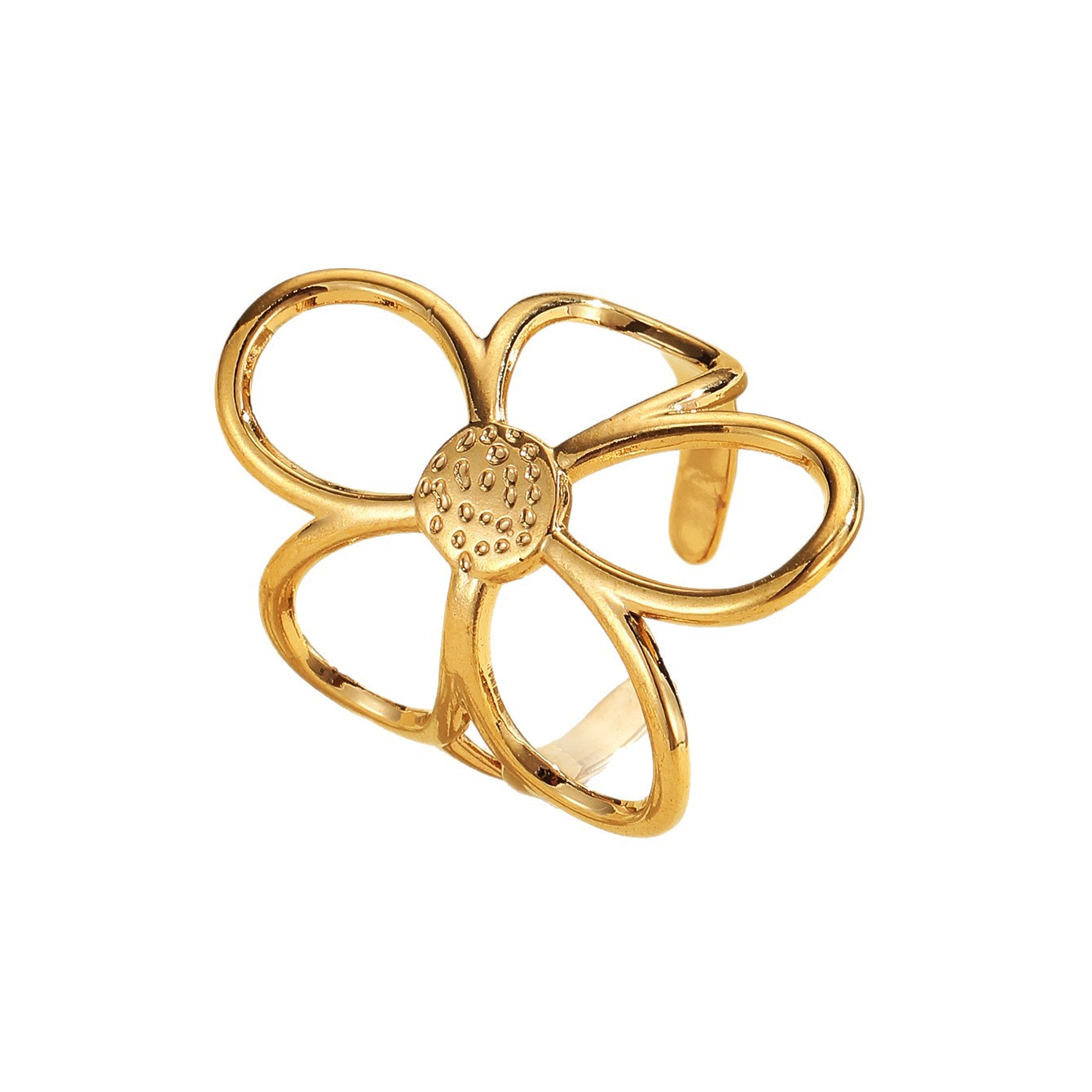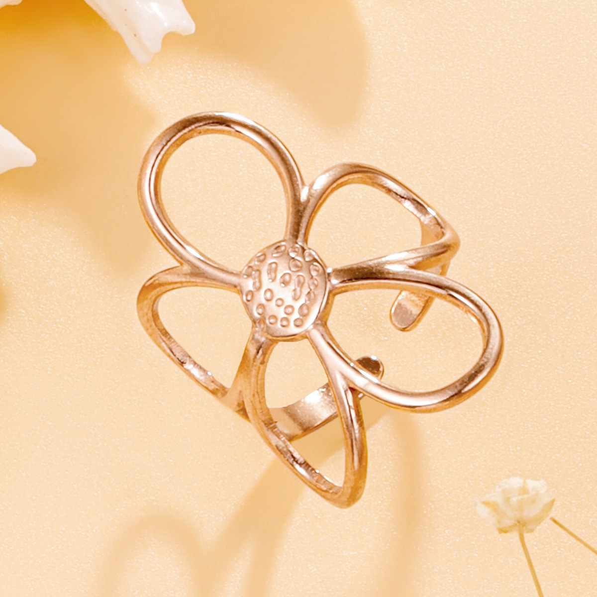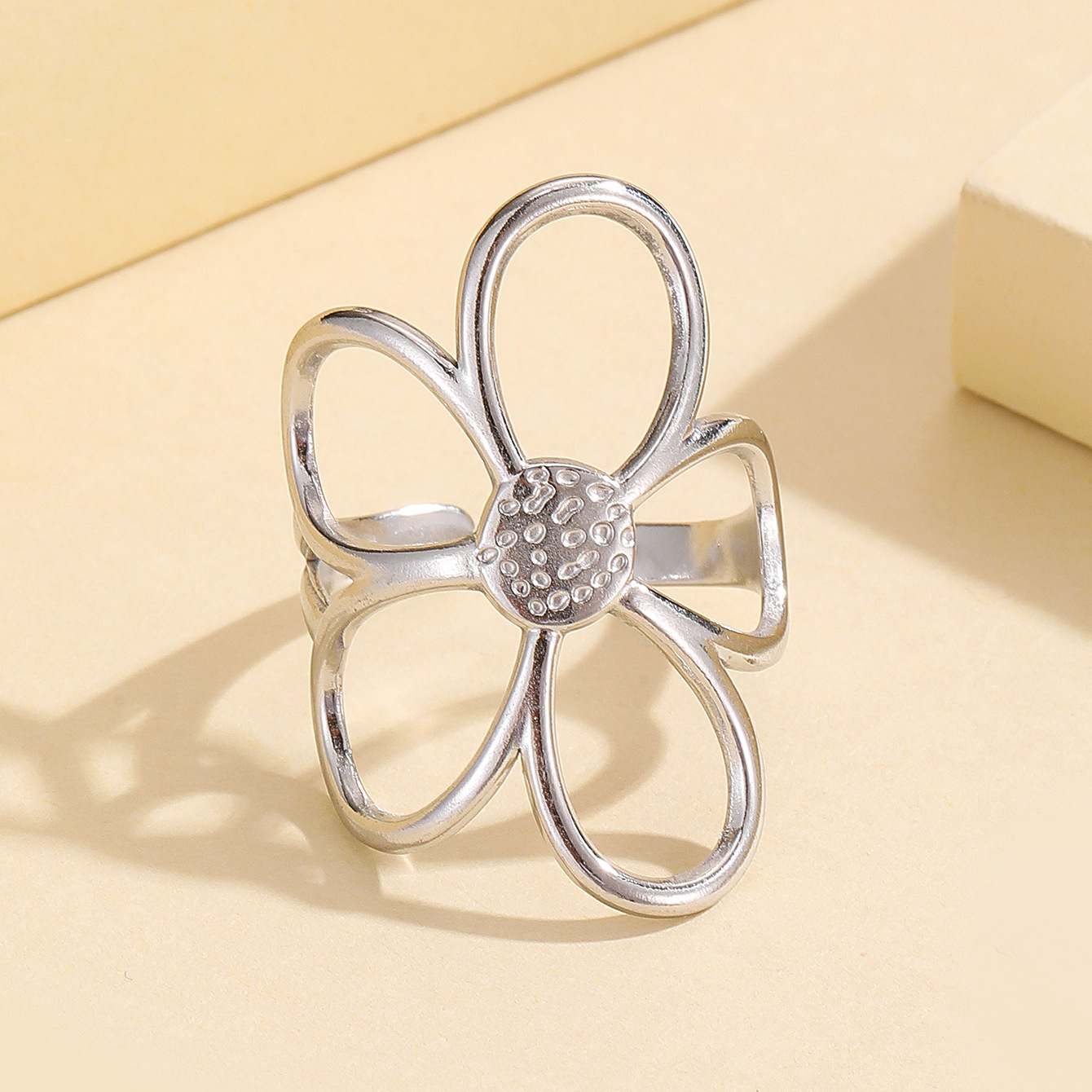 Главная страница > модное и универсальное кольцо из нержавеющей стали с вырезанным цветком и отверстием, ювелирные изделия из 18-каратного золота с вакуумным напылением под давлением масла, женское кольцо, готовое к продаже
