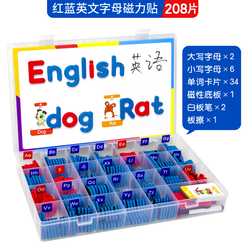 208 [Красный и Синий] 2 набора заглавных букв + 6 наборов строчных букв (включает карточки для белой доски)