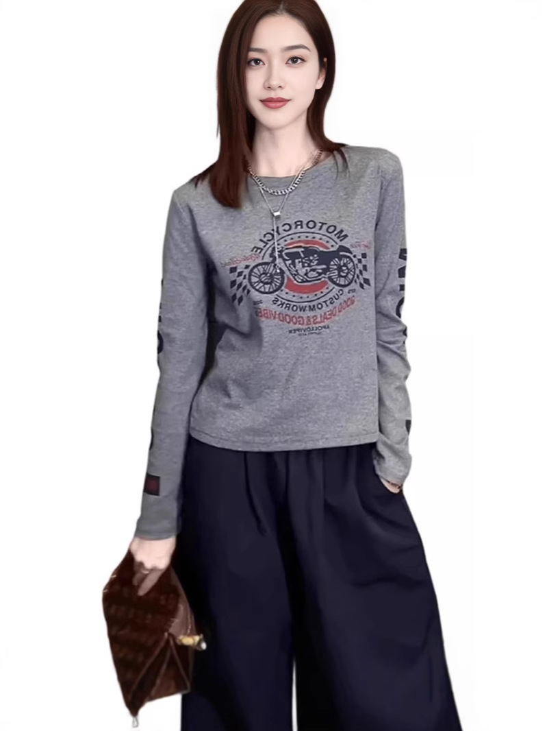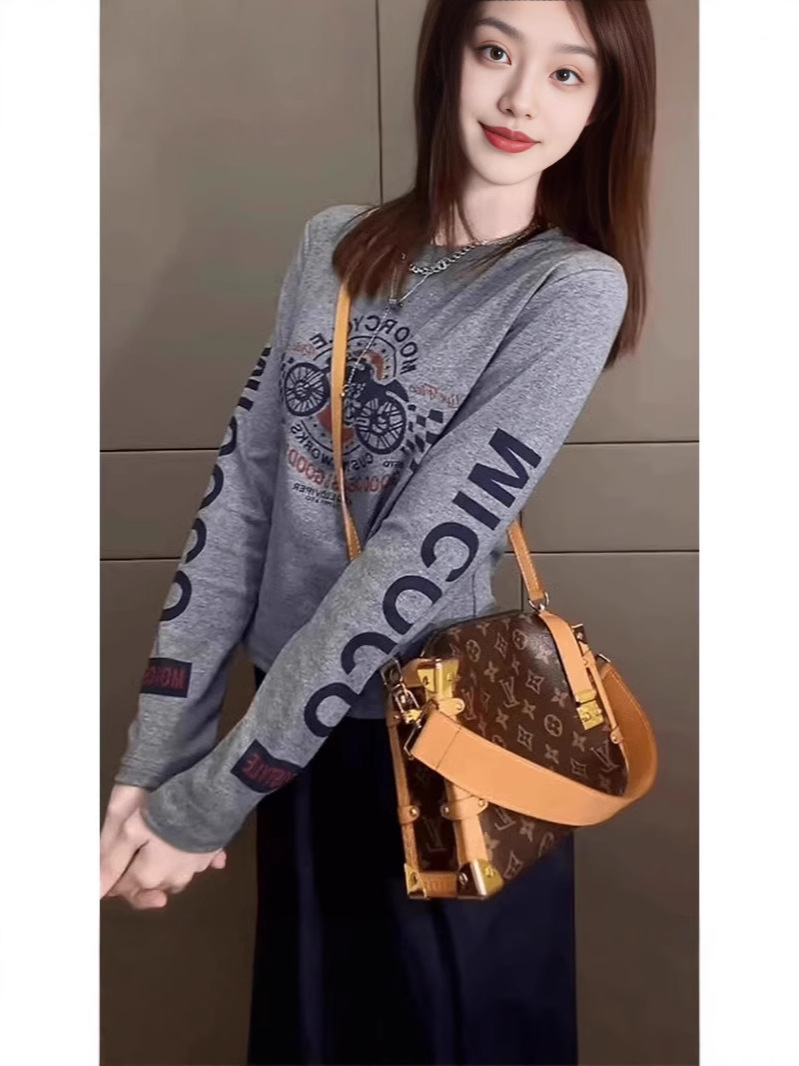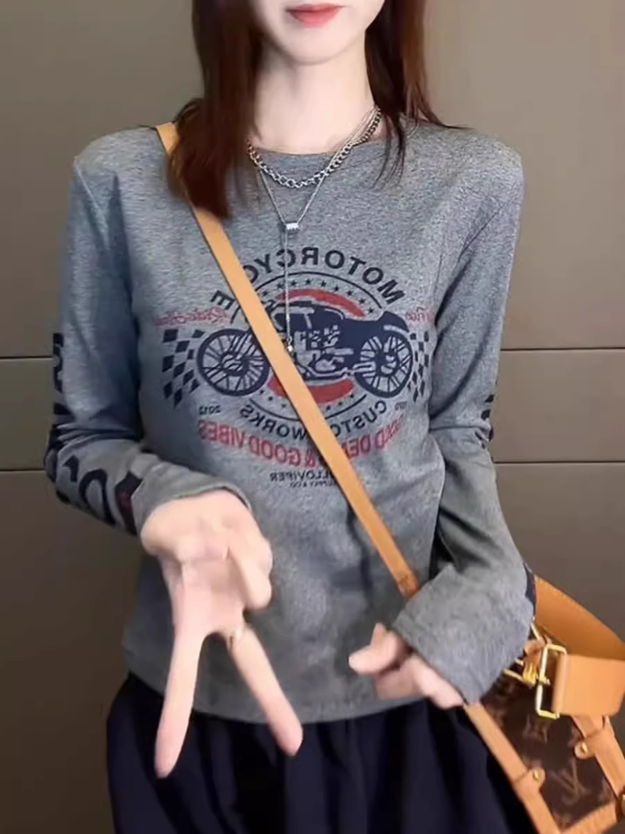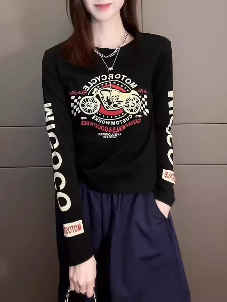 Главная страница > Женская рубашка с обычным плечом в европейском стиле, осень 2024, новая популярная футболка с длинными рукавами, повседневный свободный топ с принтом