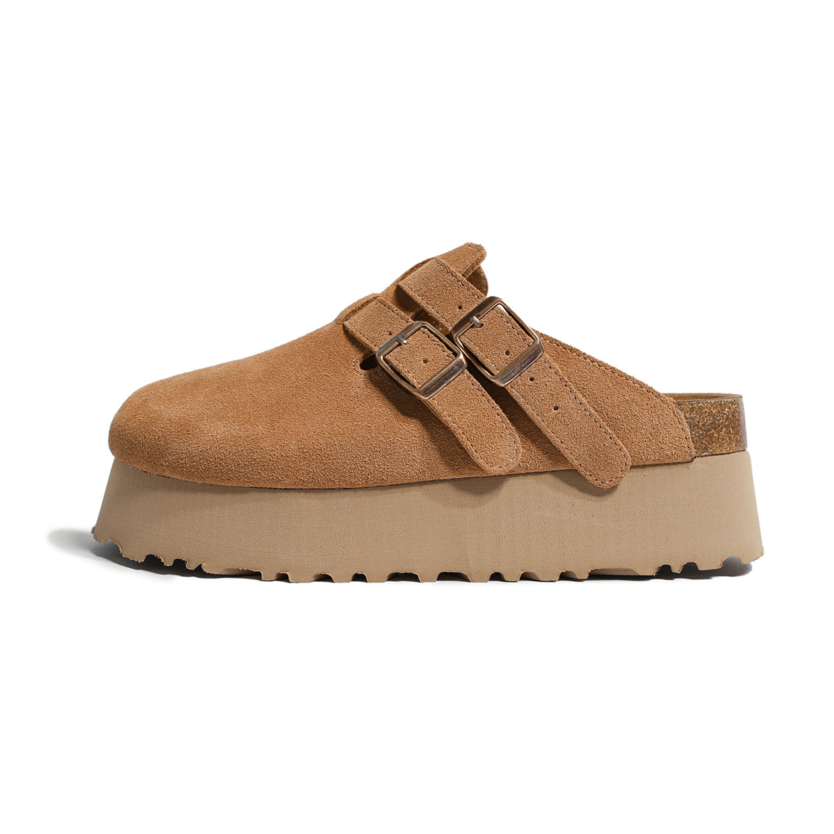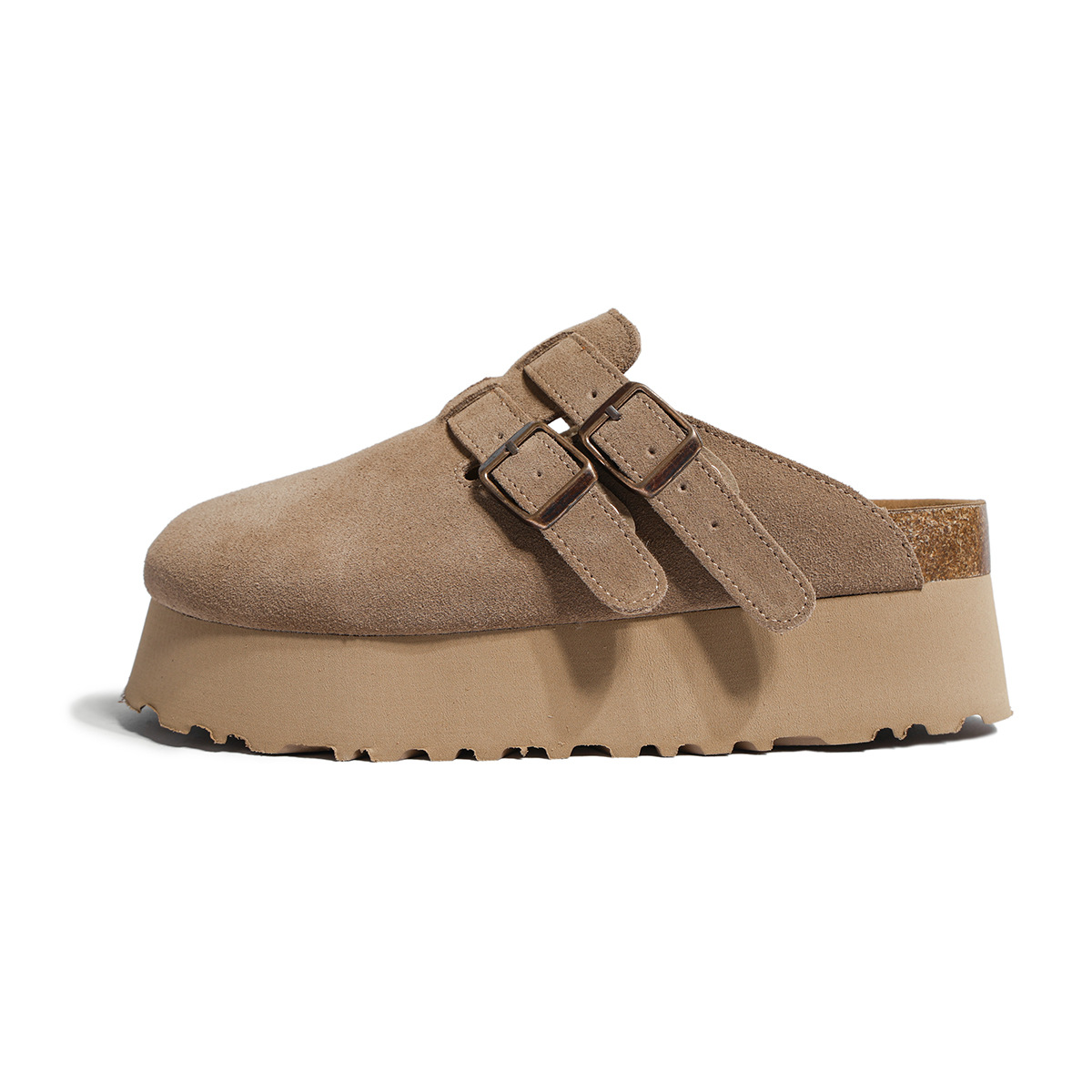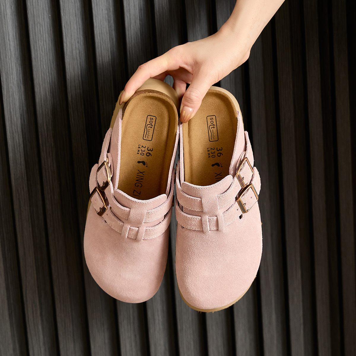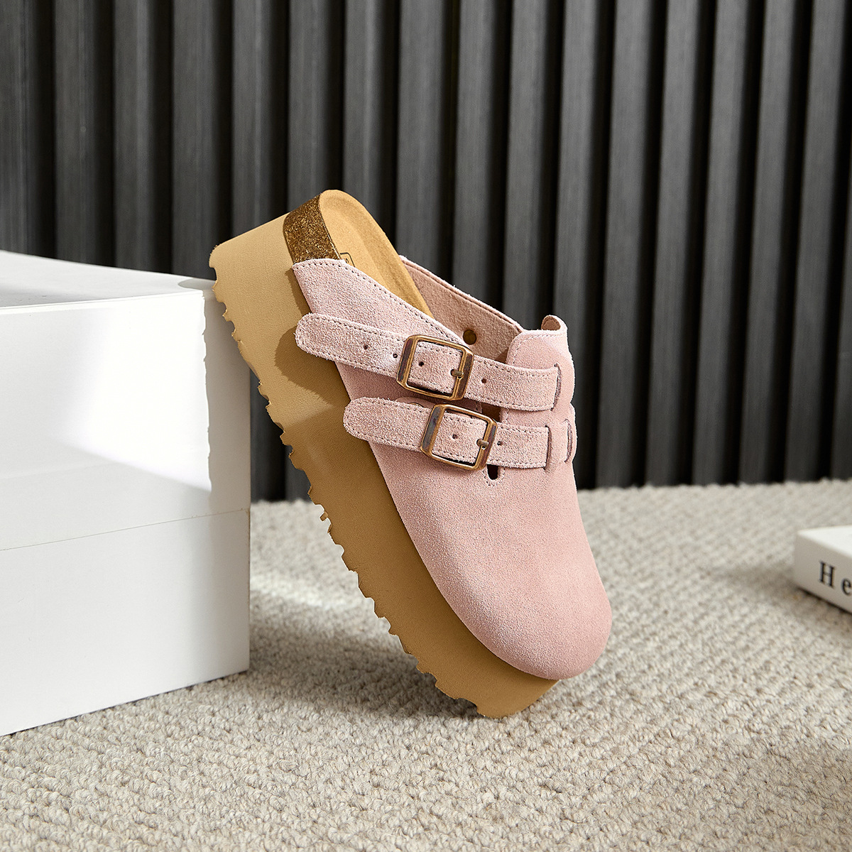 Главная страница > Розовые ботинки Birkenn Толстая подошва увеличена 6CM Короткие ботинки Летние новые кожаные полутапочки Баотоу холодные тапочки женские