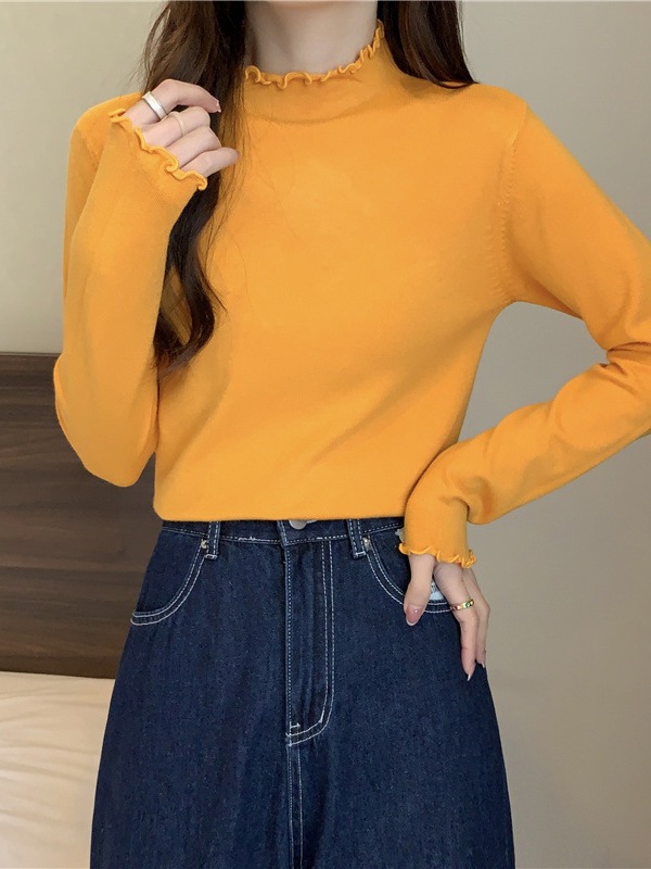 Главная страница > Уникальный дизайн деревянная ушная окантовка сплошной цвет полувысокого воротника с длинными рукавами Футболка осень и зима новая женская рубашка