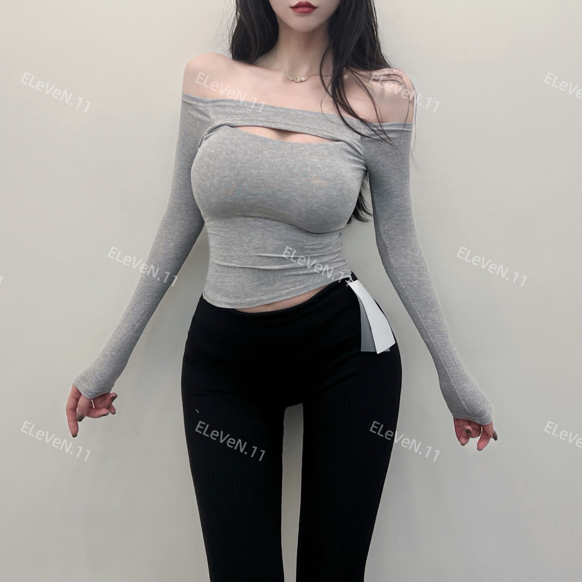 Главная страница > Комикс грудь/чистый ретро с полыми плечами футболка с длинными рукавами женская весна высокого уровня дикий сексуальный нижний топ