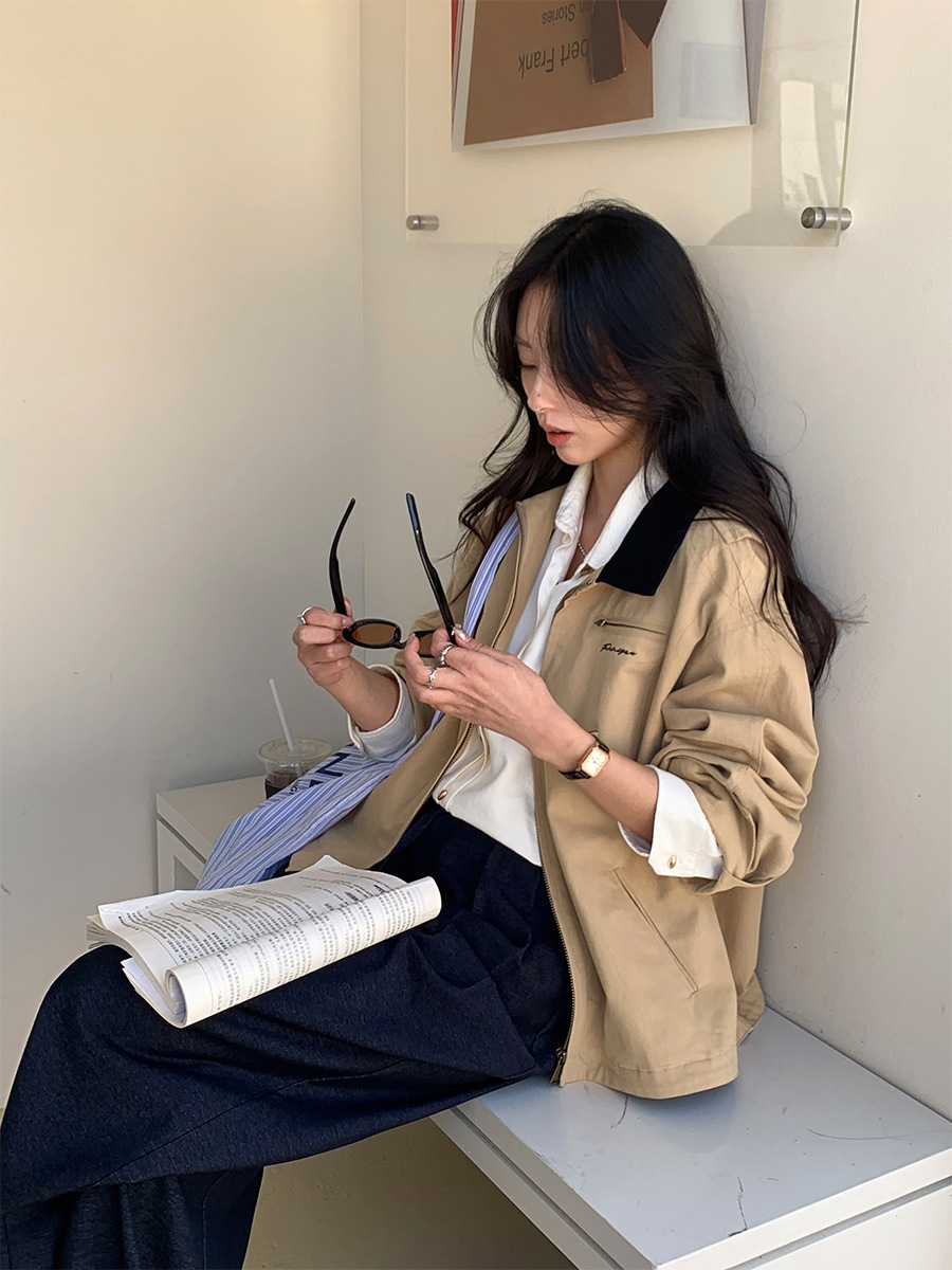 Главная страница > Гуанчжоу Huangyi нишевый дизайн ретро контрастный лацкан женская куртка ранней осени 2025 повседневная ветровка 510013