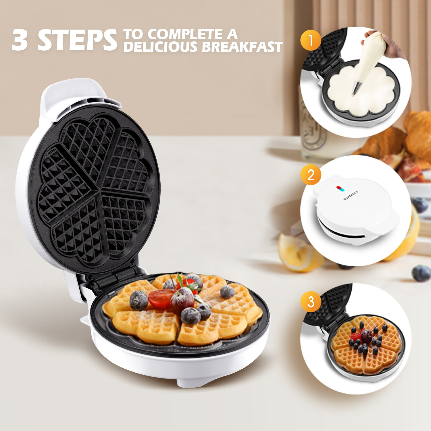 Главная страница > JAMAKY Бытовая маленькая электрическая вафель машина для выпечки курицы яйцо рулет торт сэндвич машина для завтрака