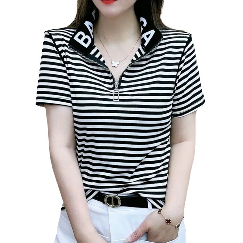 Главная страница > Летняя Новая женская футболка с коротким рукавом 2024 года, покрывающая мясо рубашка-поло, повседневный универсальный модный стройнящий Свободный Топ для женщин