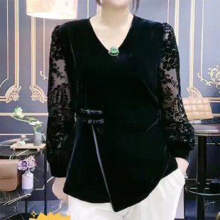 Главная страница > Модная и элегантная женская блузка с длинным рукавом из ажурного вельвета для женщин среднего и старшего возраста, осенняя коллекция 2024, в стиле прямой трансляции.