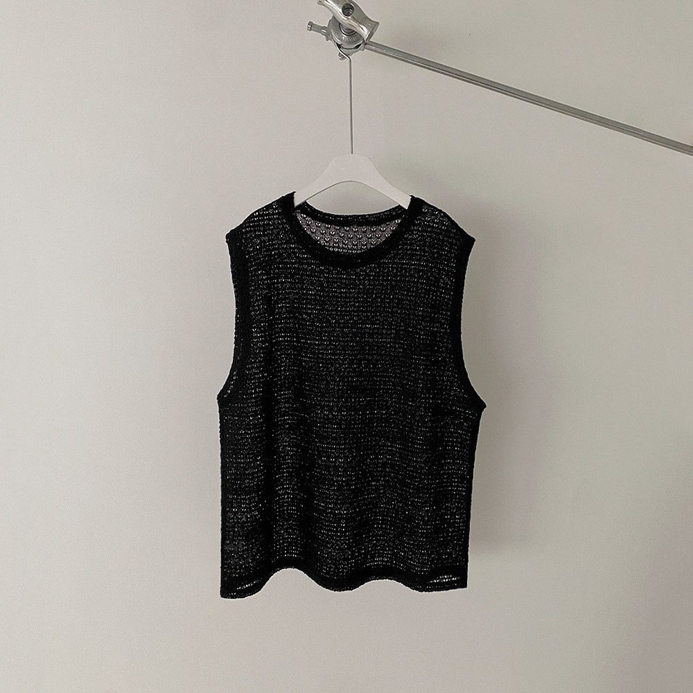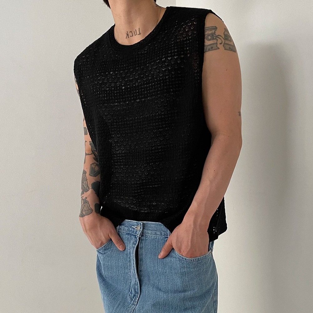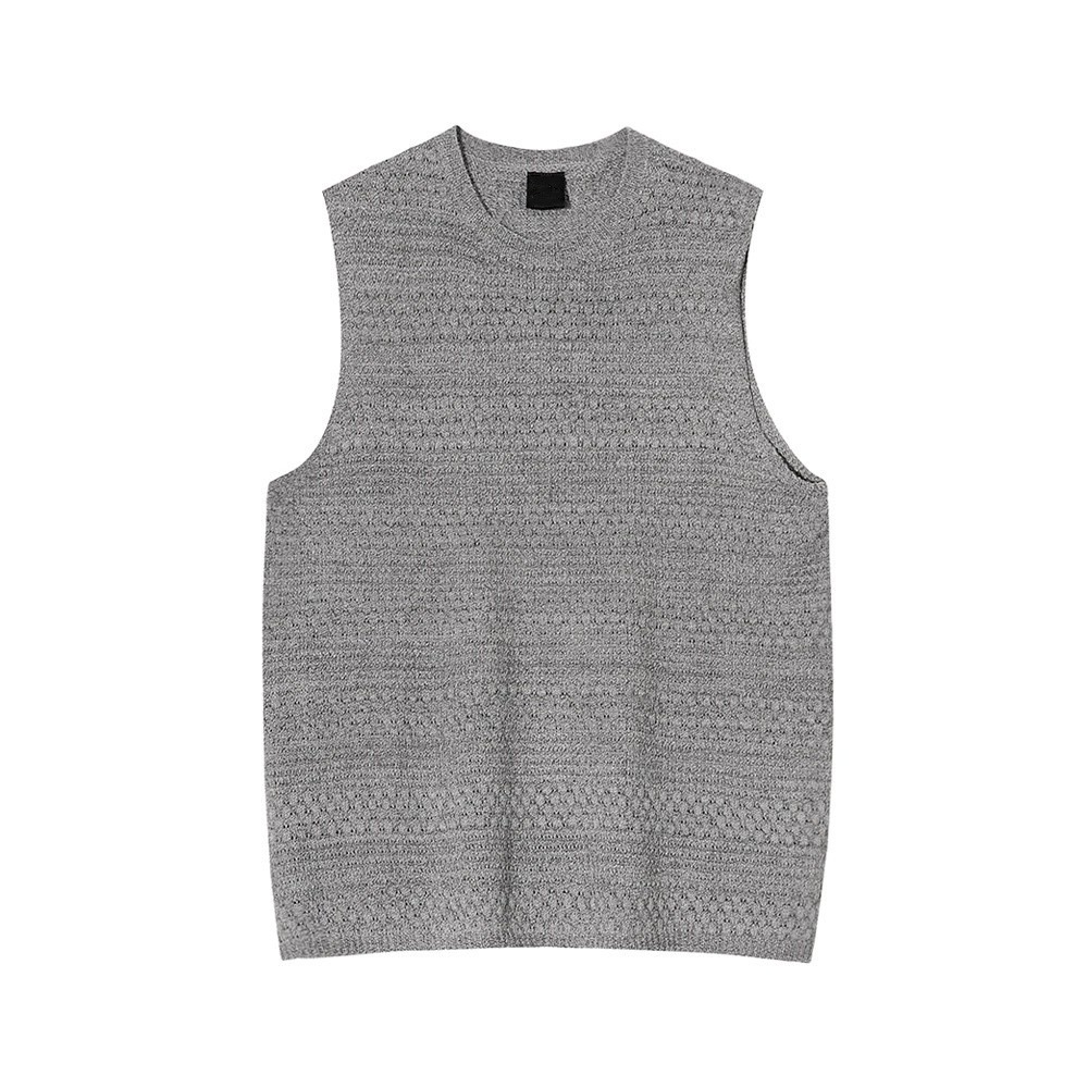 Главная страница > Легкий зрелый стиль, красивый вязаный жилет с вырезами, мужская летняя свободная футболка без рукавов, модный нишевый жилет в корейском стиле с круглым вырезом