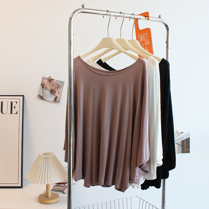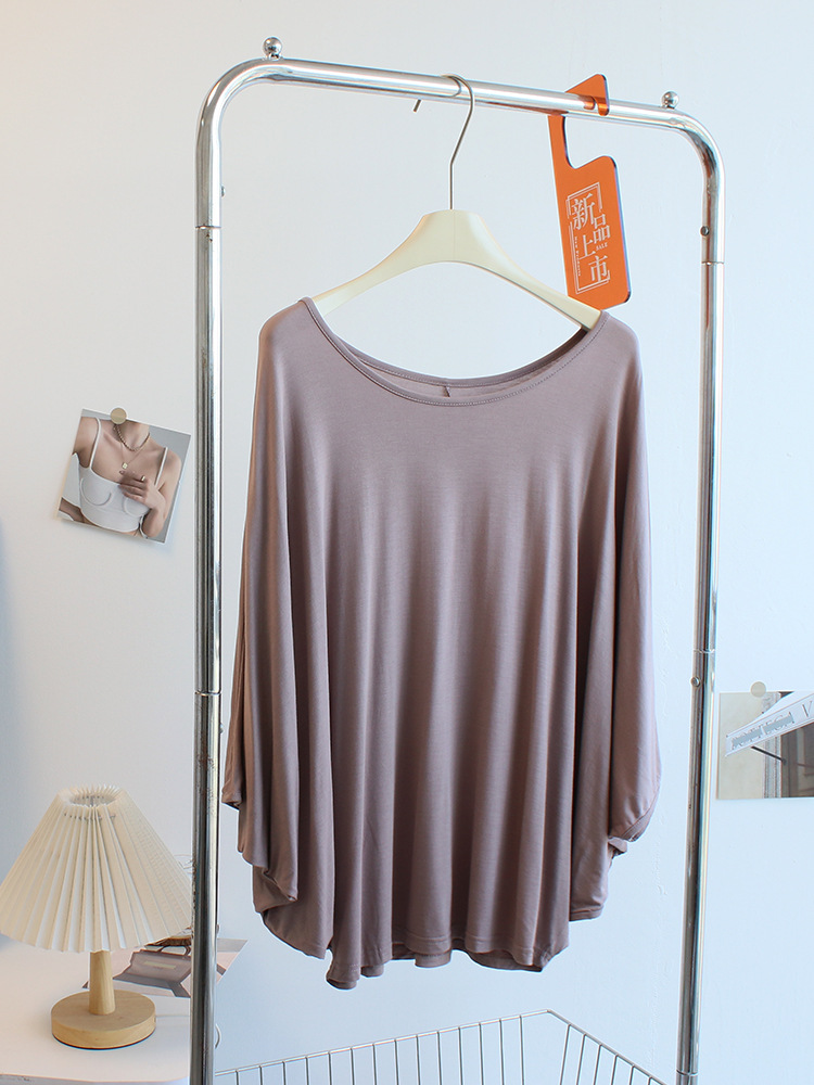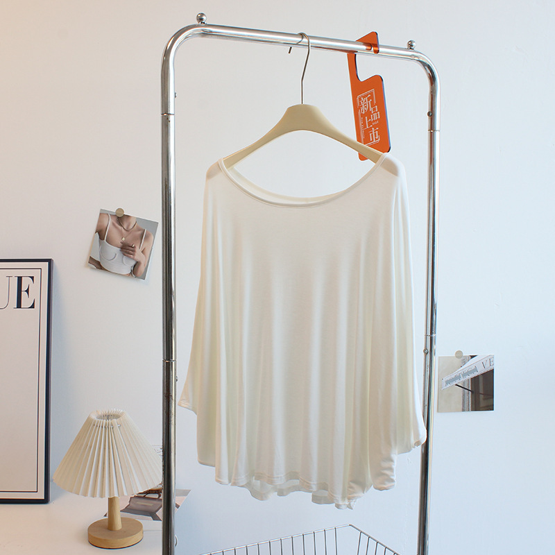 Главная страница > Футболка с большим вырезом с косым плечом женская весна и лето тонкая модельская свободная рубашка с рукавами фонаря летучей мыши танцевальный костюм блузка