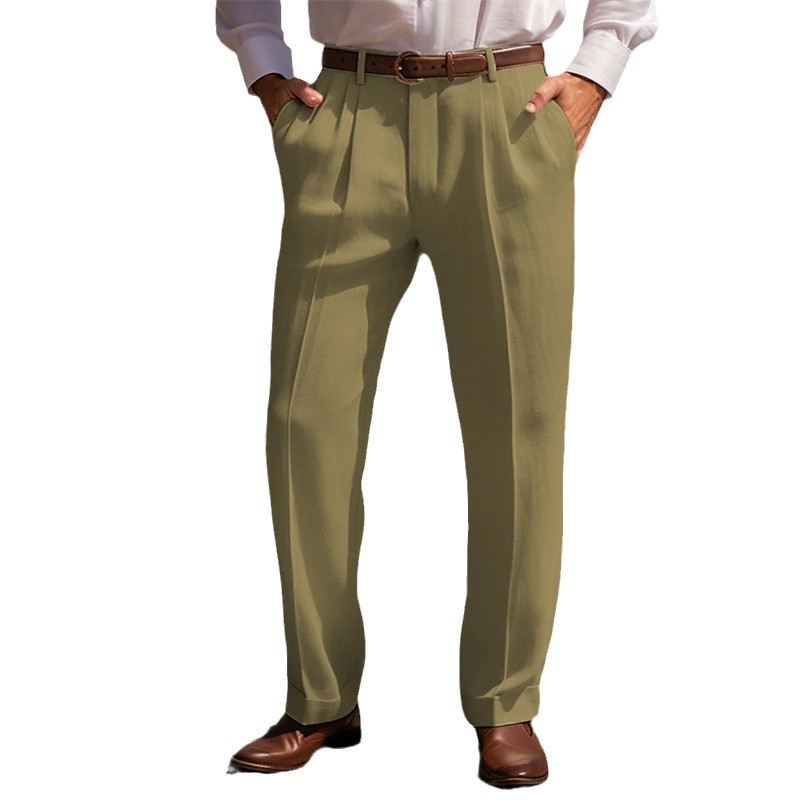 Главная страница > Мужские льняные брюки летние передние карманы с прямолинейными складками простые цвета для комфорта и дышащий повседневный отдых