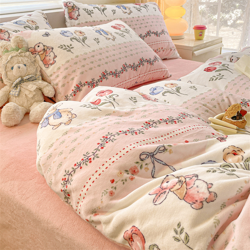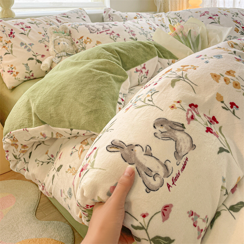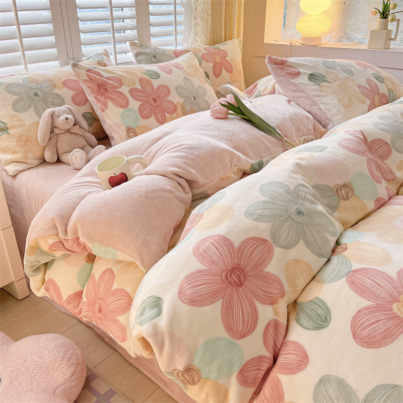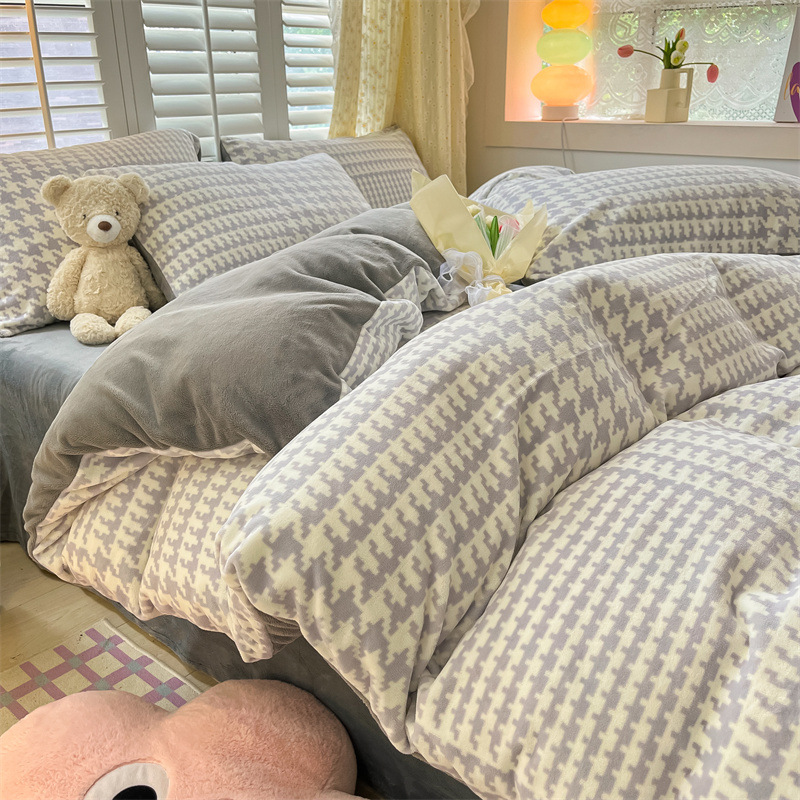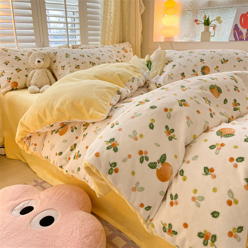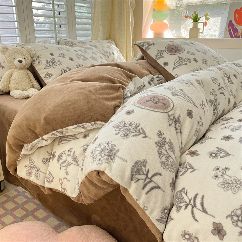 Главная страница > Комплект постельного белья из четырех предметов класса А, имитирующий молочный велюр, для зимы, коралловый флис, простыня, пододеяльник, комплект из трех предметов, с натяжной простыней, утолщенный.