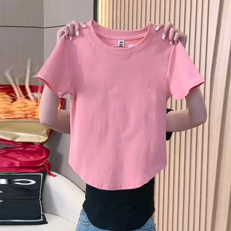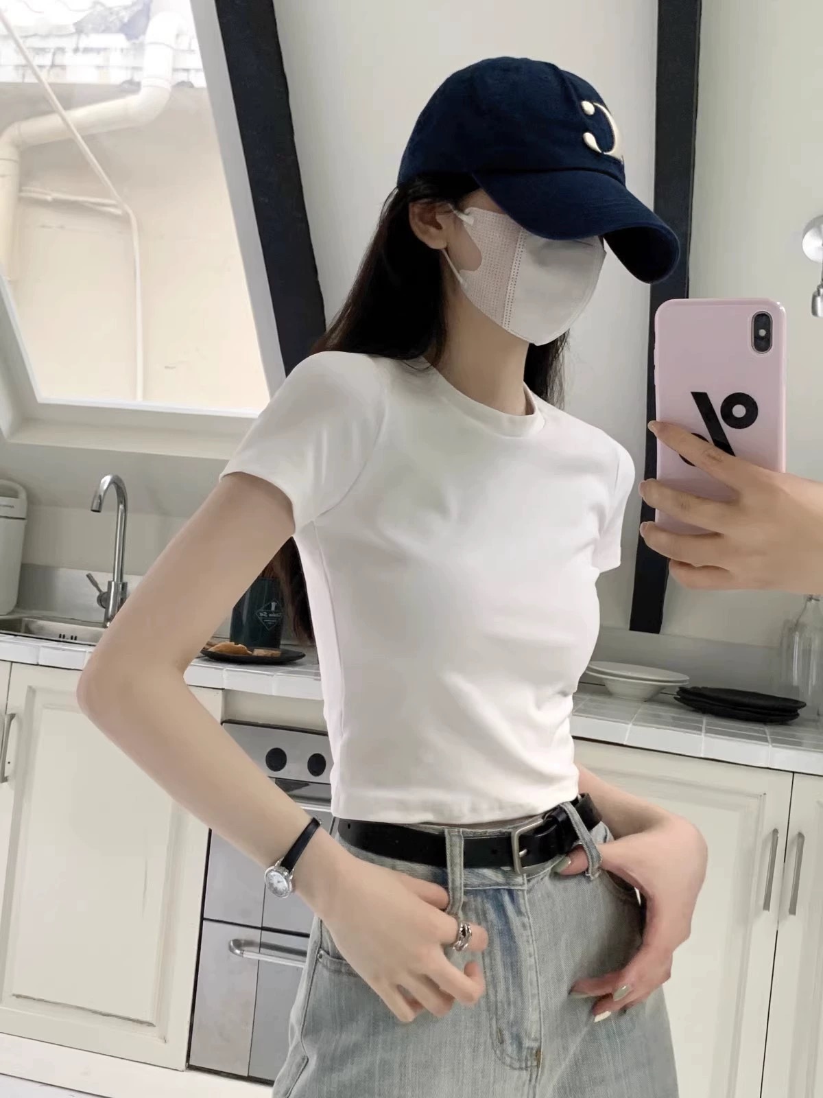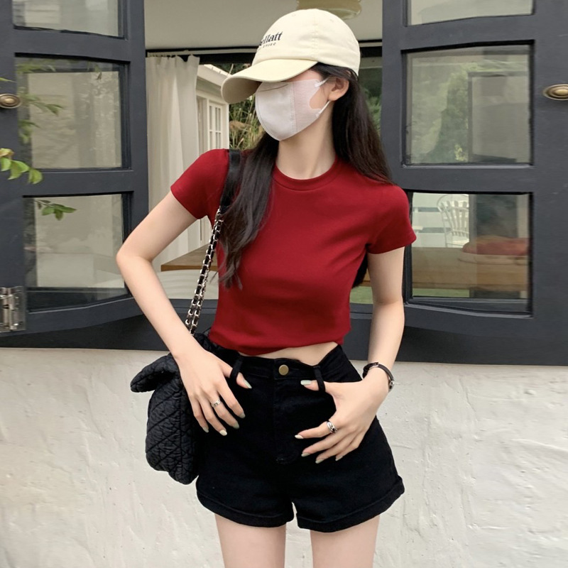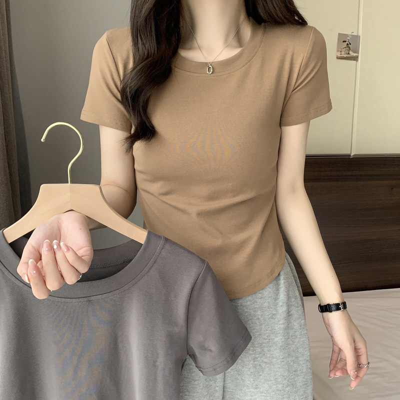 Главная страница > Элегантная Универсальная футболка на плечах с круглым вырезом, женская летняя новая нижняя рубашка с короткими рукавами, облегающая хлопковая короткая футболка для похудения