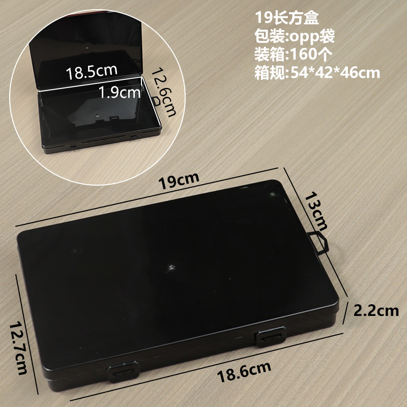 19 прямоугольных коробок, прозрачные, черные, размер 19*13*2,2 см