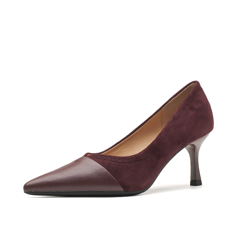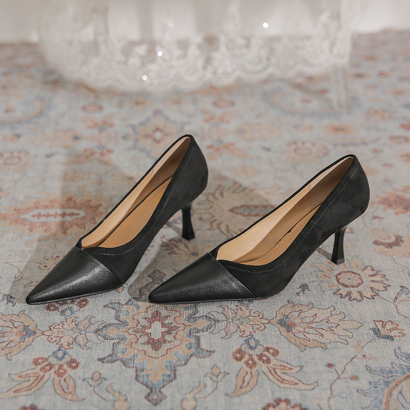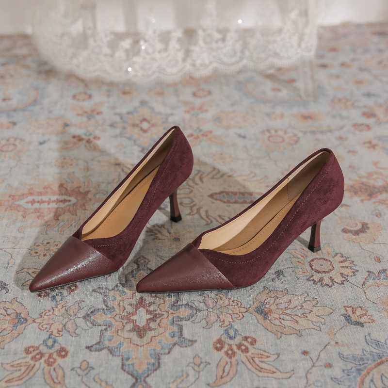 Главная страница > Французские ретро-туфли на высоком каблуке с V-образным вырезом, кожаные, в стиле пэчворк, с острым носком, элегантные замшевые вечерние туфли для женщин