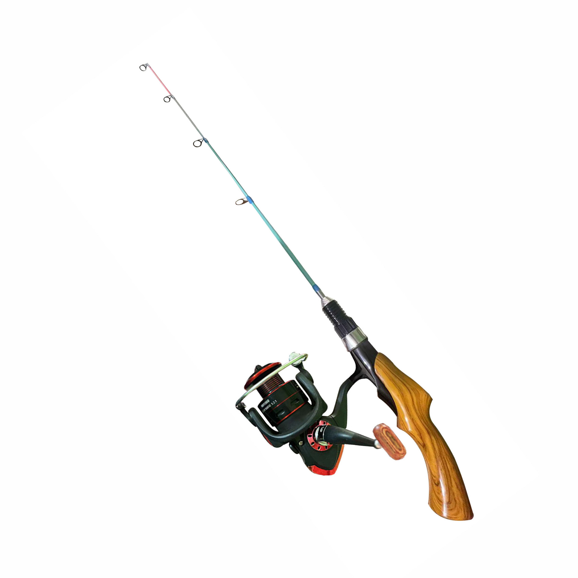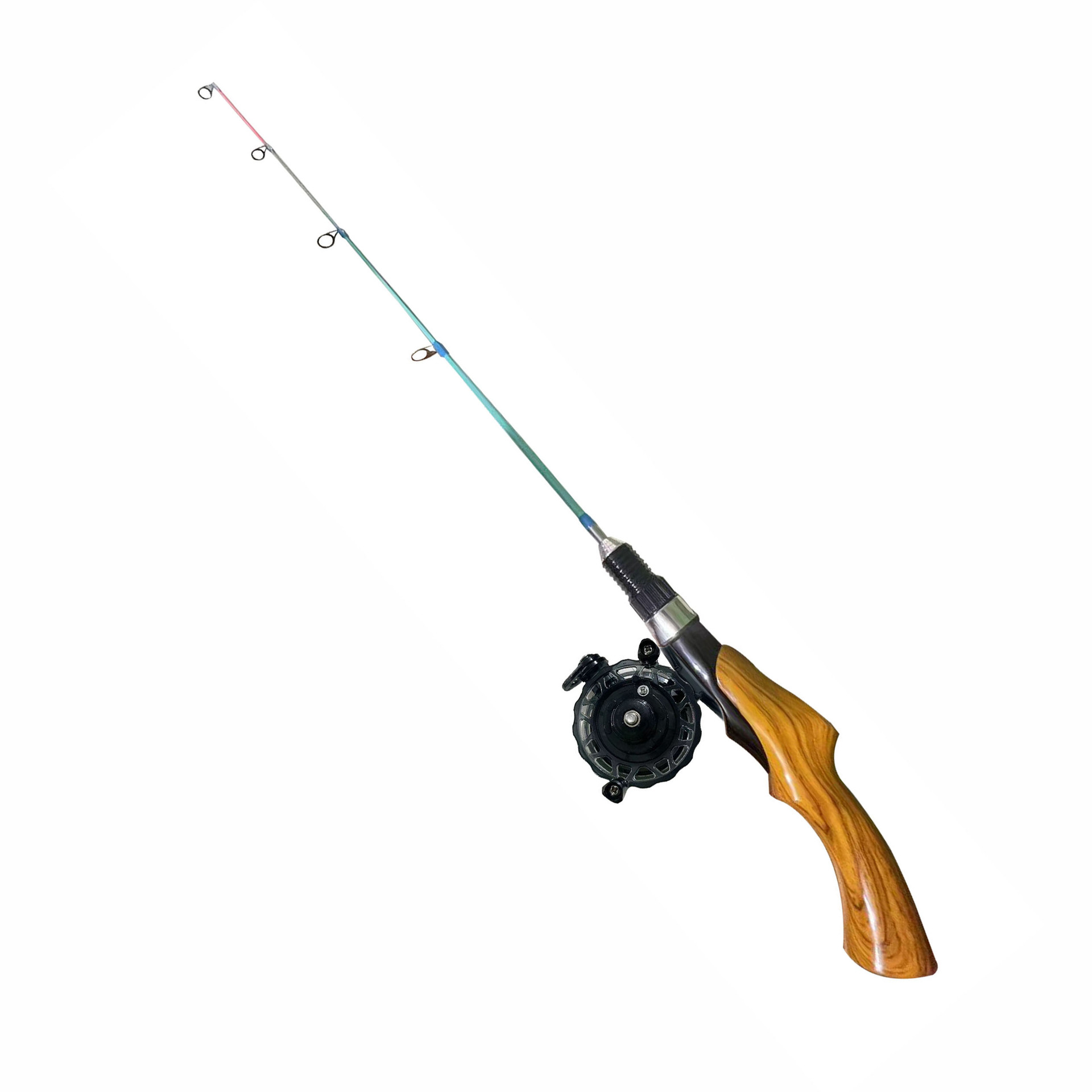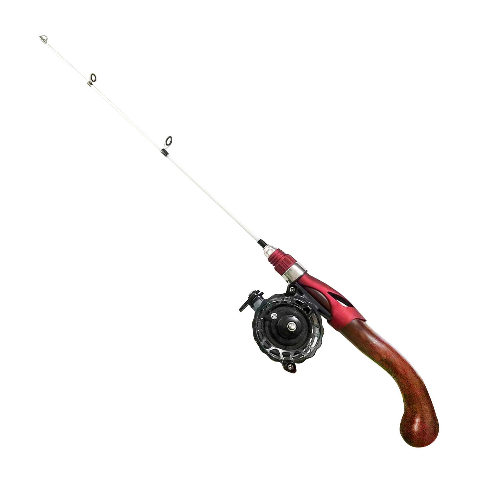 Подледная удочка с текстурой красного дерева + катушка для зимней рыбалки с автоматическим тросом