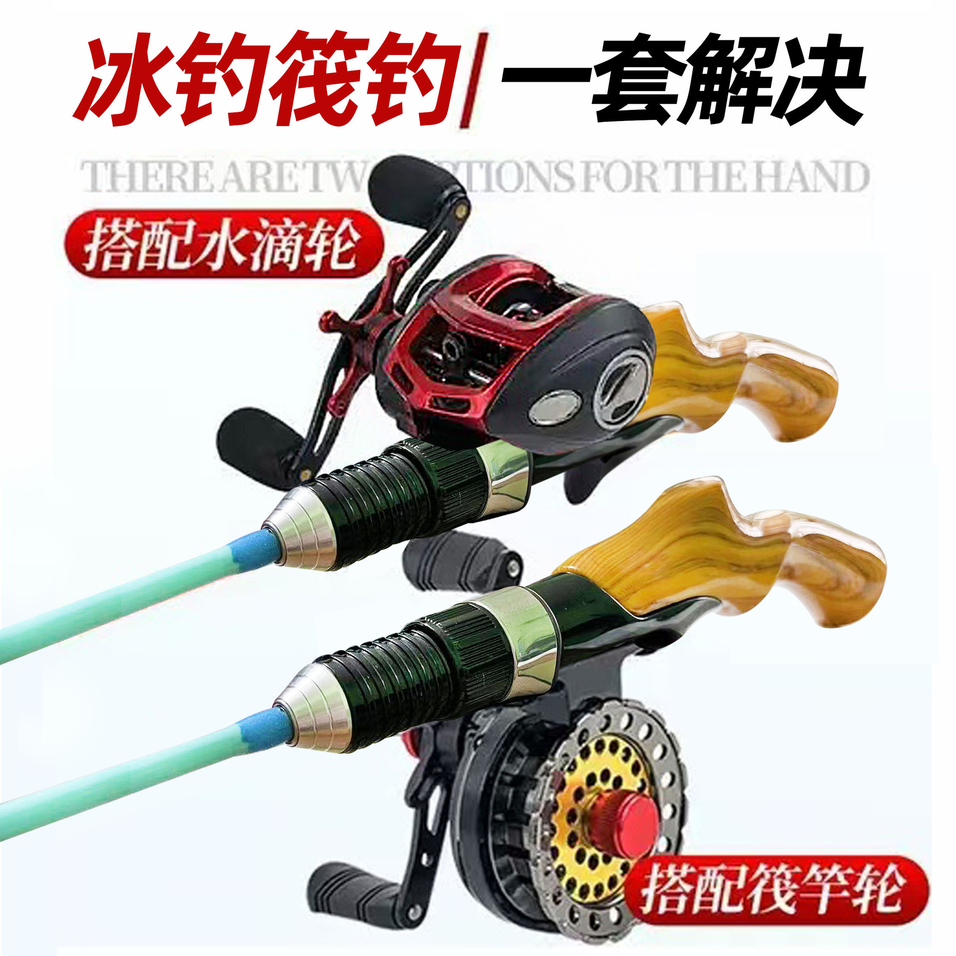 (Высококачественная) Подледная удочка с деревянной ручкой + катушка с металлическим плотом