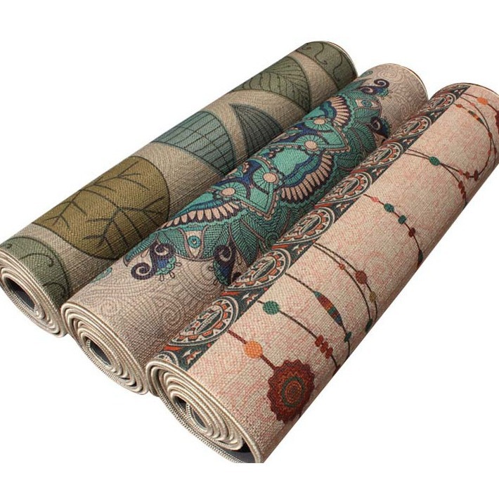 Льняной коврик для йоги из натурального каучука, утолщенный и расширенный, противоскользящий коврик для фитнеса, универсальный размер, продажа напрямую с фабрики