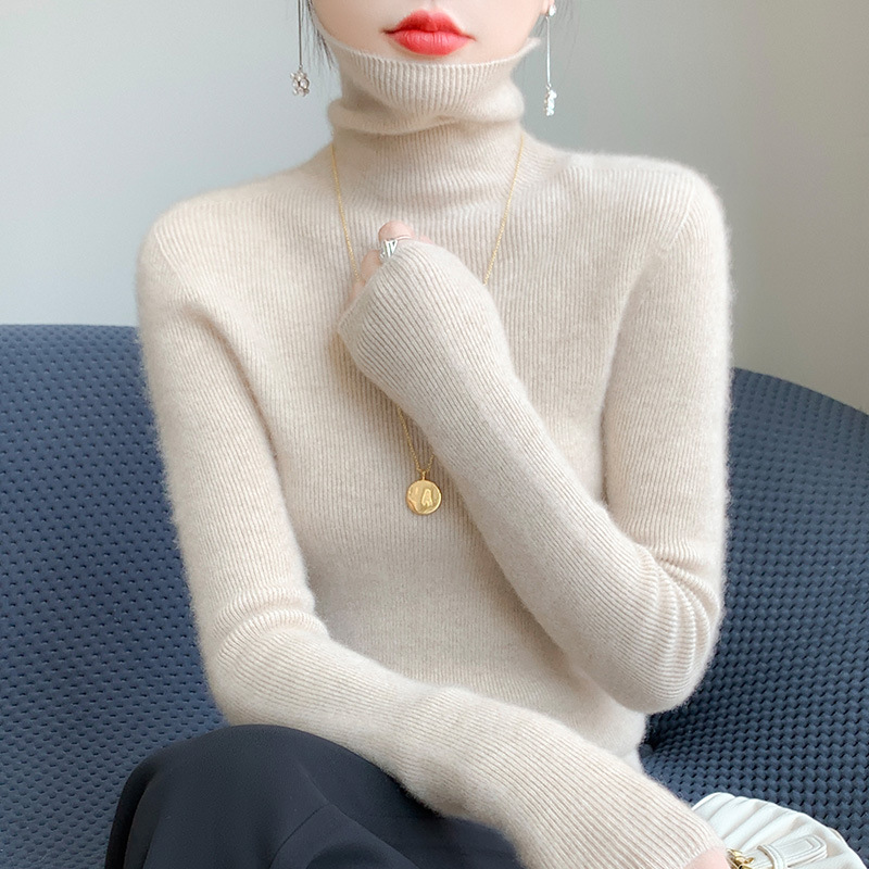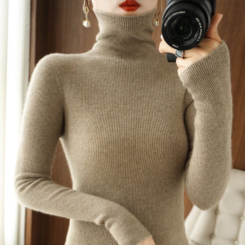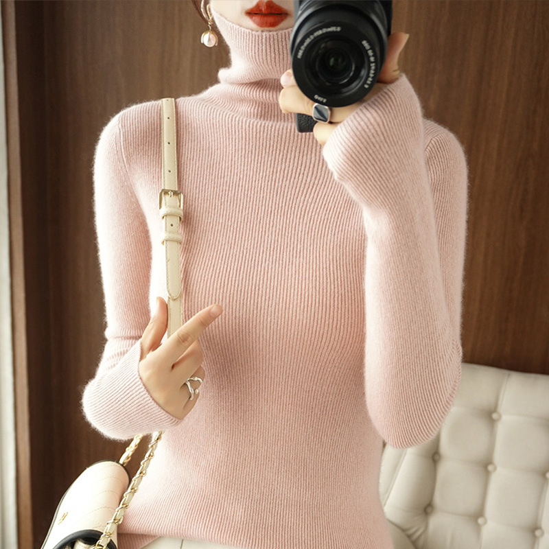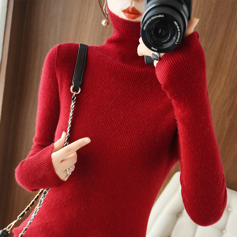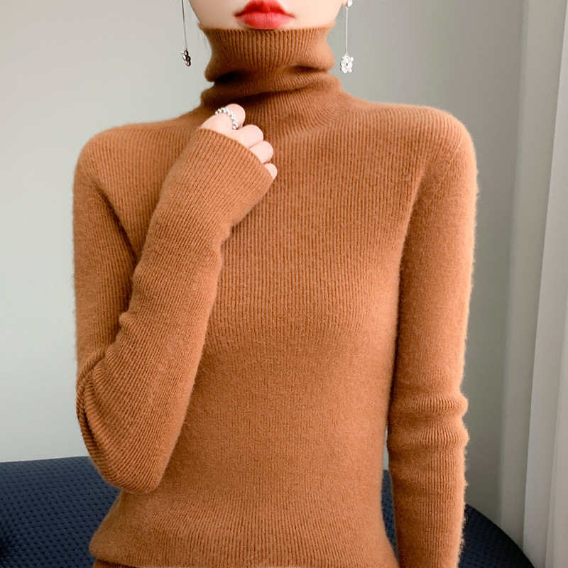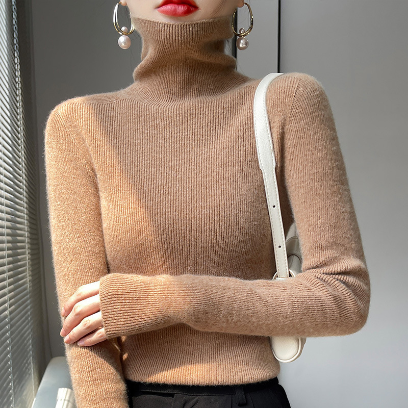 Главная страница > Женский трикотажный свитер-пуловер с высоким воротником и многослойным воротником, длинными рукавами, облегающий, в корейском стиле, осень-зима 2025