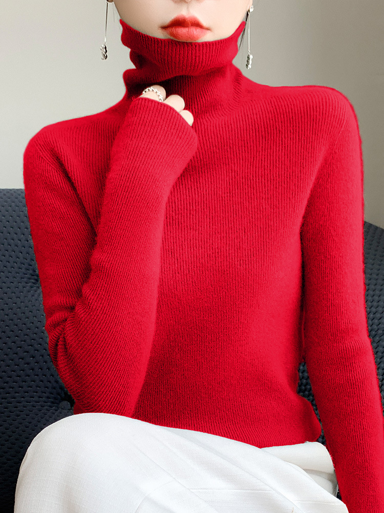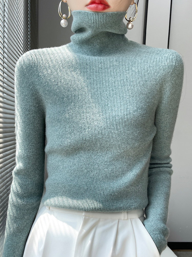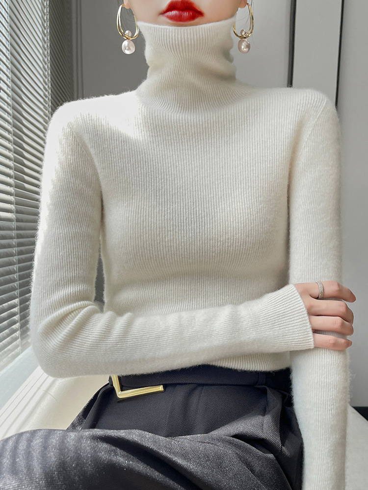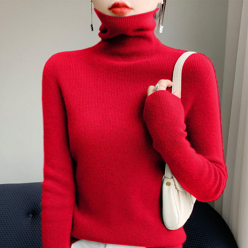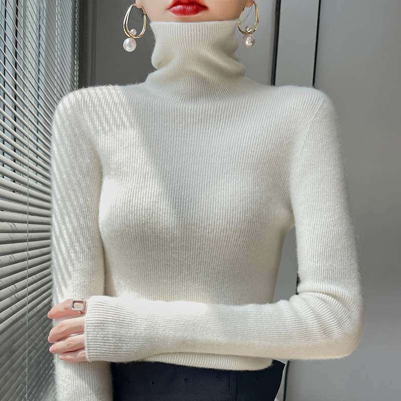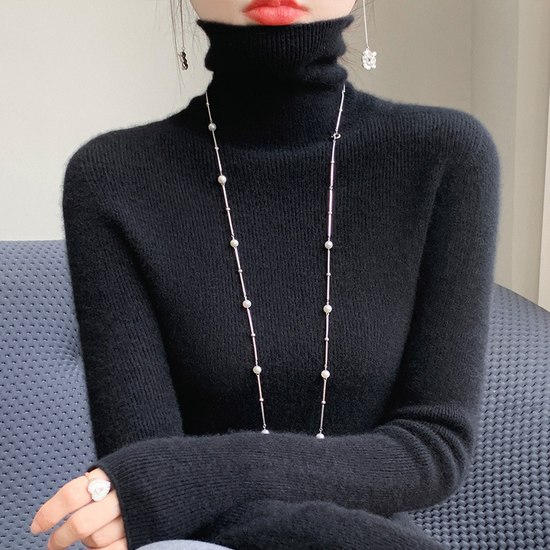 Главная страница > Женский трикотажный свитер-пуловер с высоким воротником и многослойным воротником, длинными рукавами, облегающий, в корейском стиле, осень-зима 2025