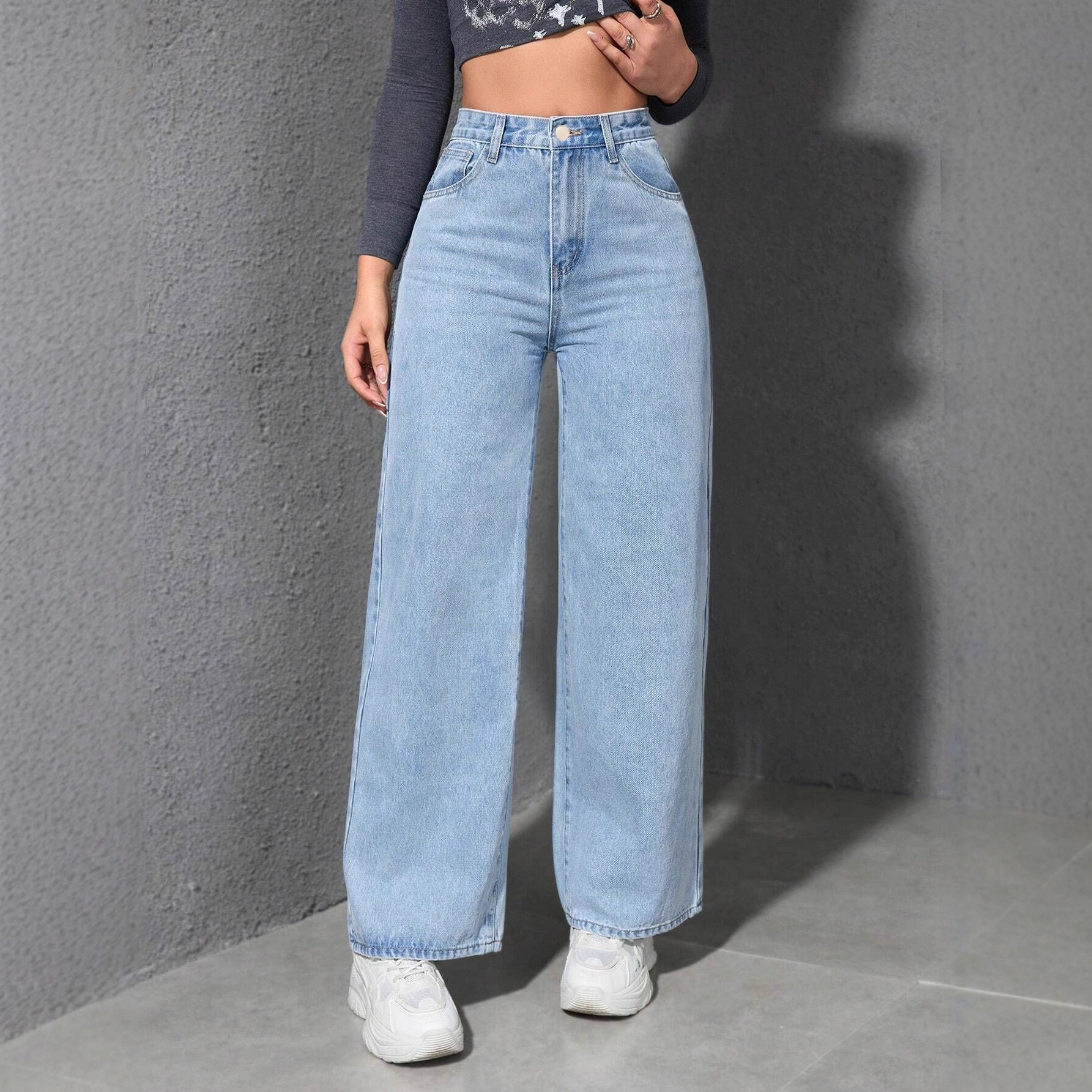 Трансграничные прямые тощие широкие джинсы женские мойки, свободные джинсовые брюки Американский новый весенний 2