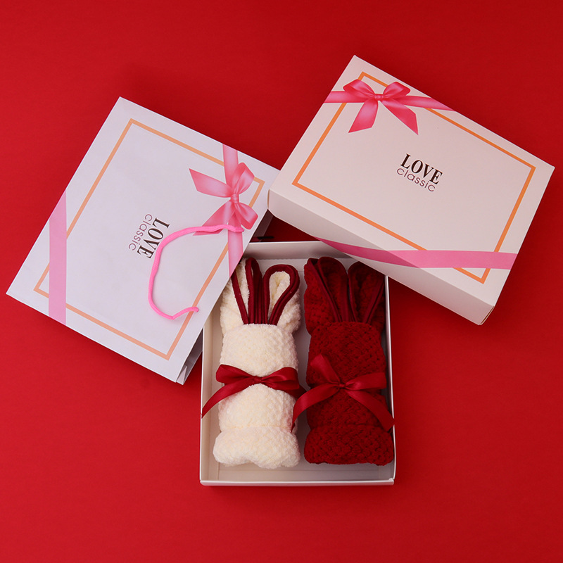 Сувенирное полотенце из кораллового флиса, квадратное, в подарочной коробке, для свадьбы, праздника, торжества, на полнолуние, Рождество, с изображением кролика и медведя