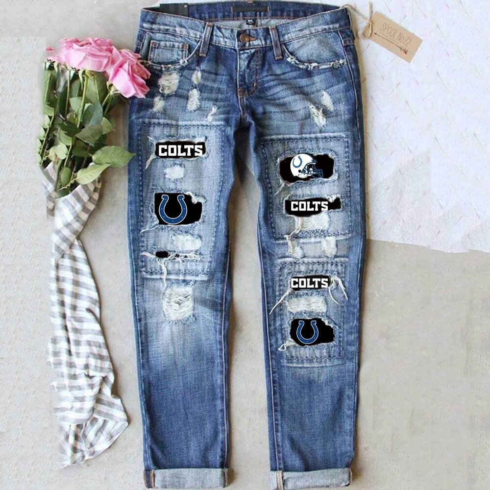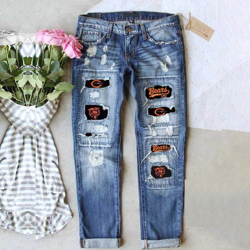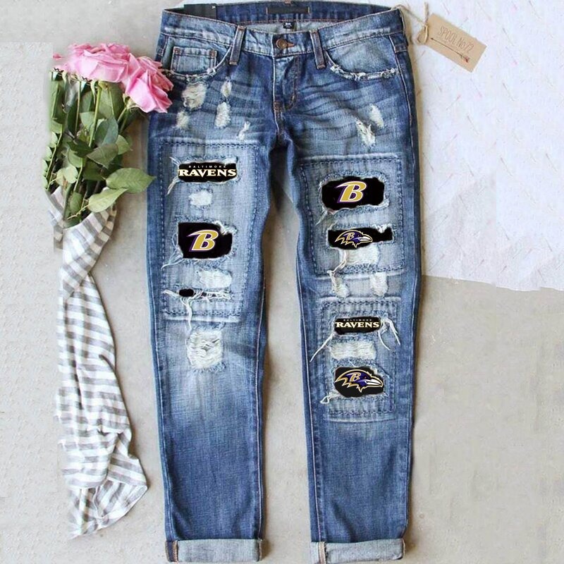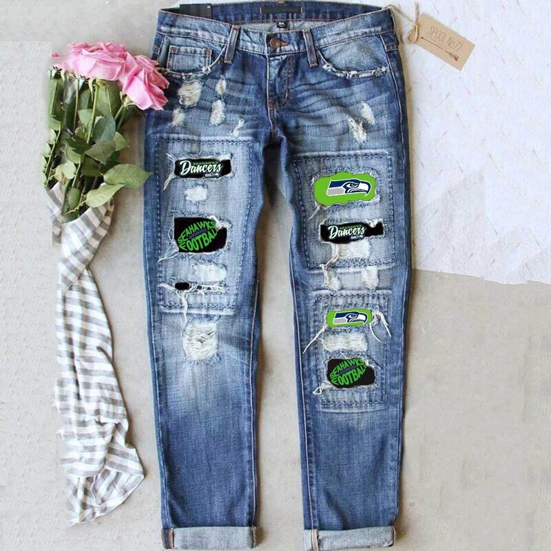 Европа и США трансграничные независимые станции Печать отверстий для внешней торговли Уличные контрастные хип-хоп уличные женские джинсы с прямой талией