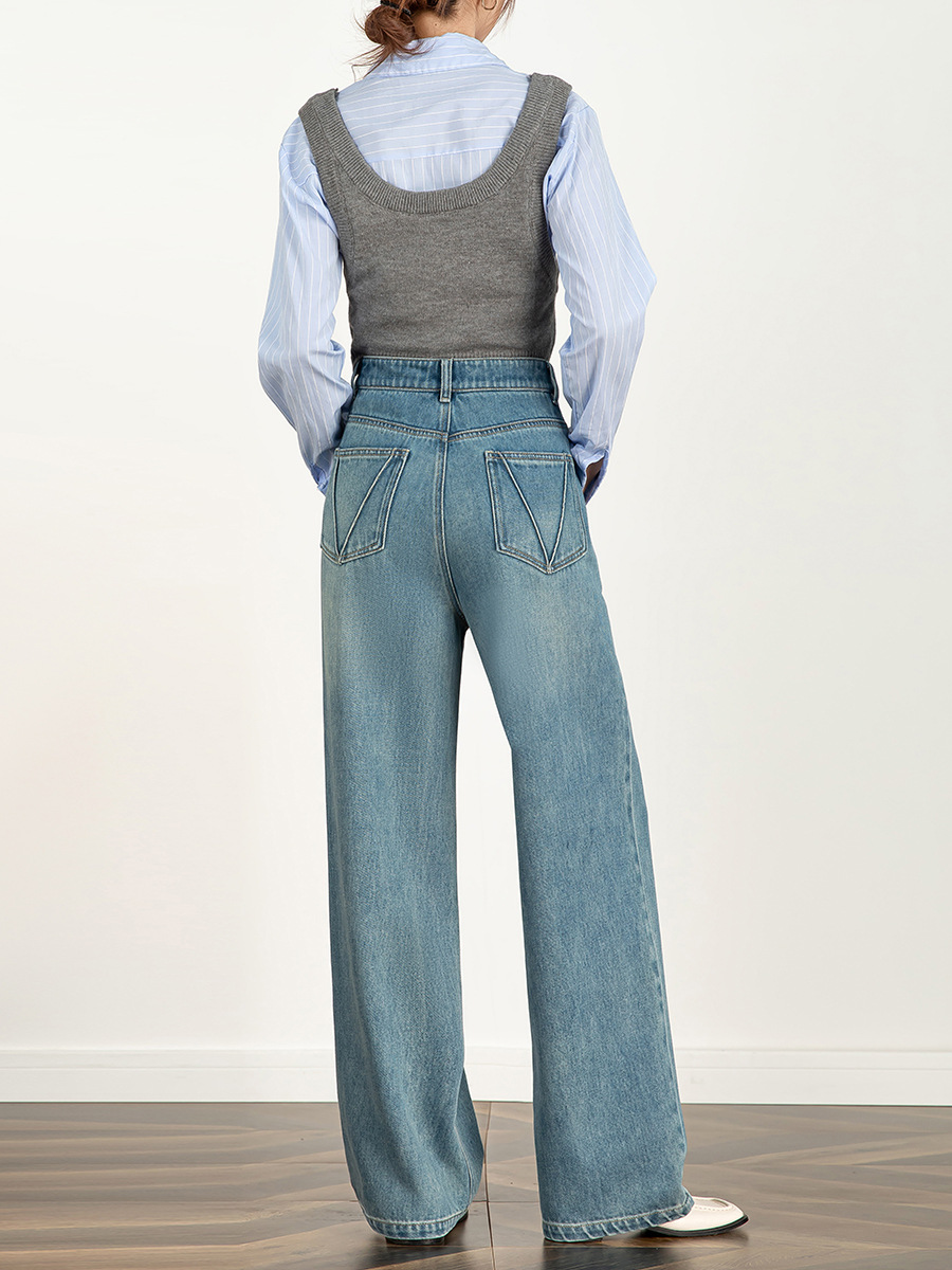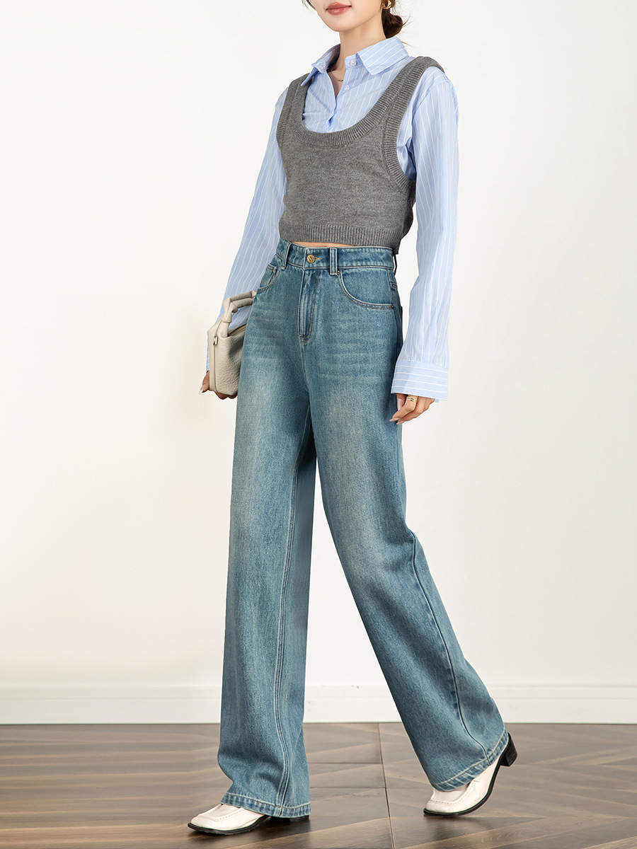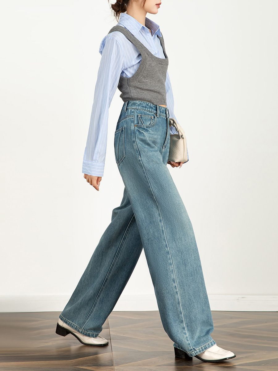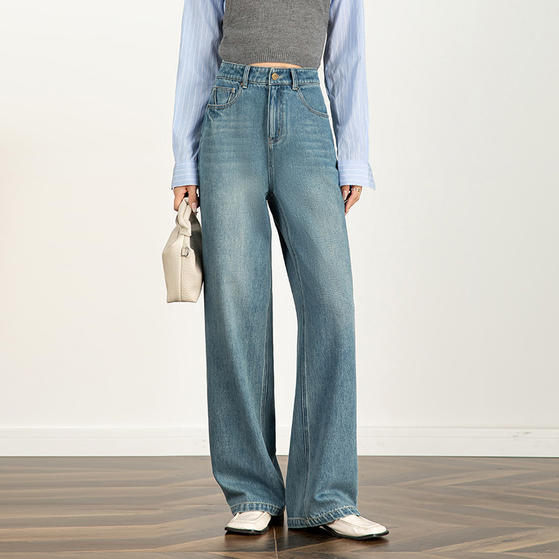 Главная страница > Джинсы женские прямые If Da Niu Creative Pocket 2025, осенняя новинка, с высокой талией, длиной в пол, широкие штанины с эффектом драпировки, модель 8150