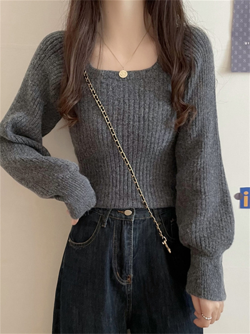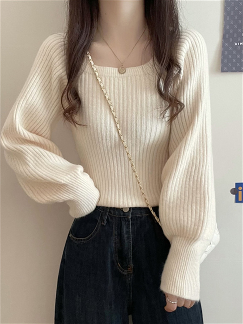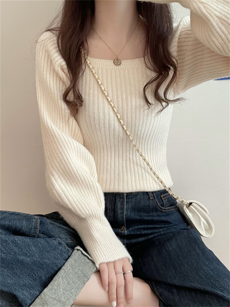 Главная страница > Квадратный воротник трикотажная нижняя рубашка женская осень-зима новый нежный ветер свободный наружный носить рукава фонаря темперамент свитер с длинными рукавами