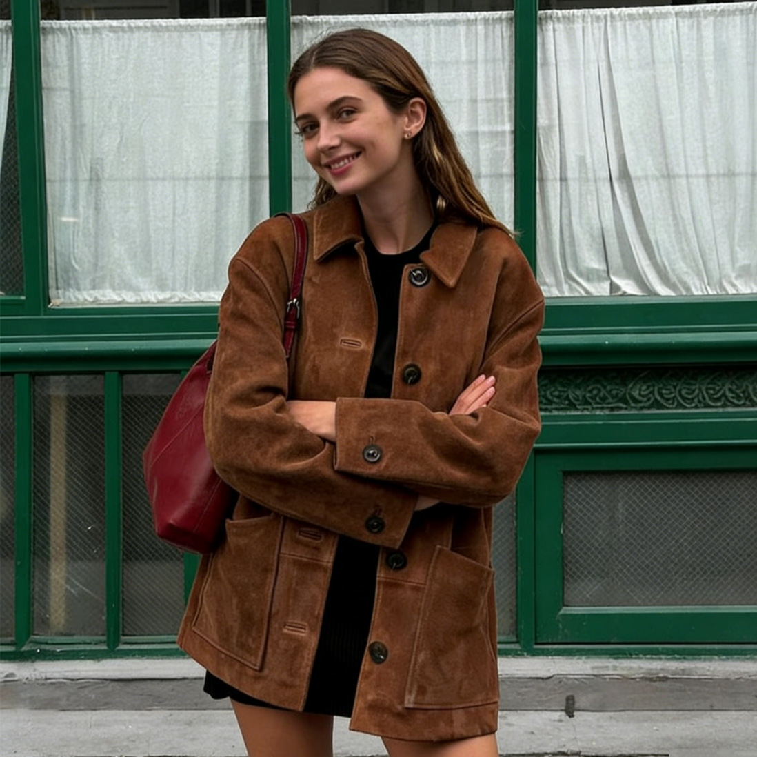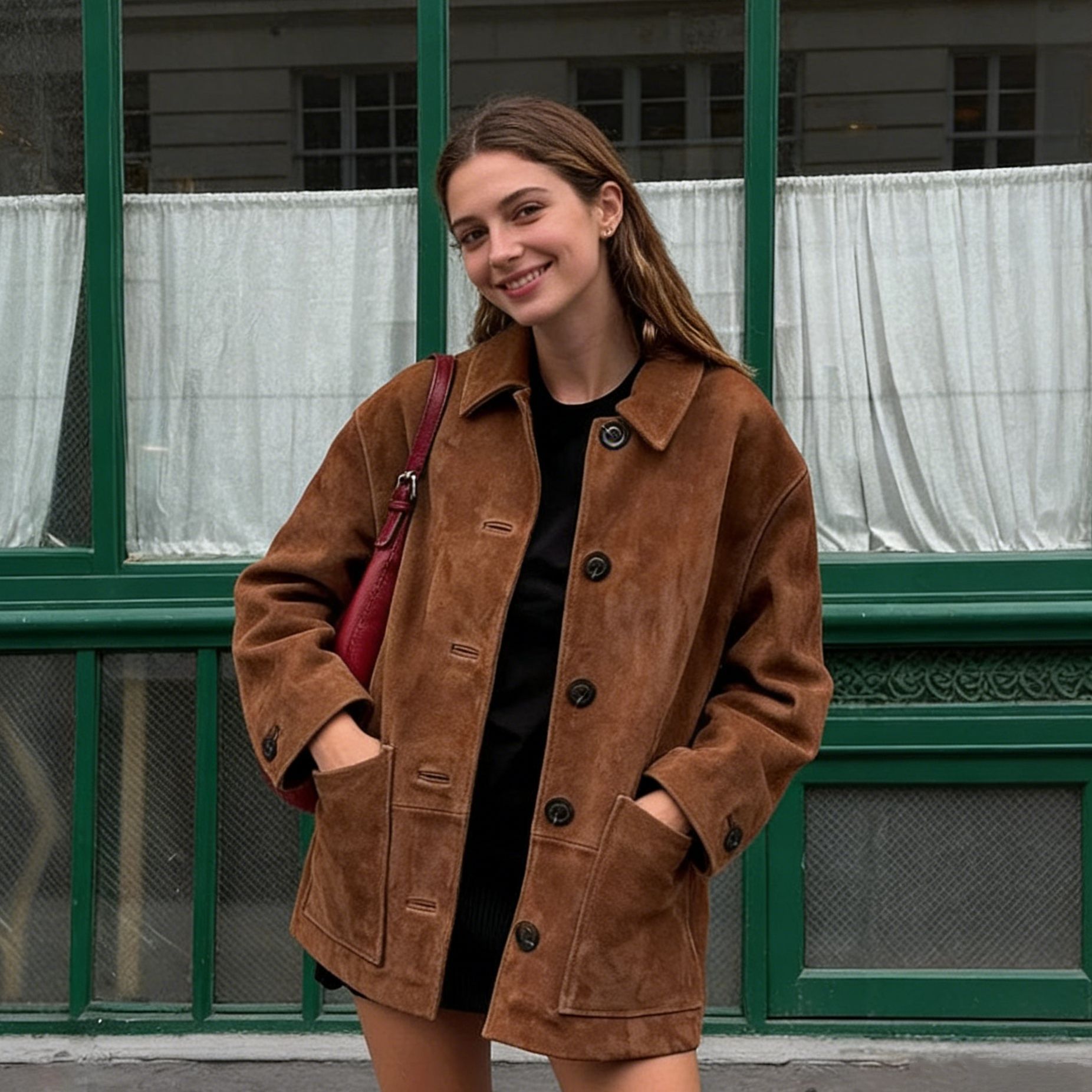 Главная страница > Женская куртка из замши в ретро стиле, однобортная на пуговицах, с лацканами, модная, европейско-американская коллекция 2025 года, AliExpress