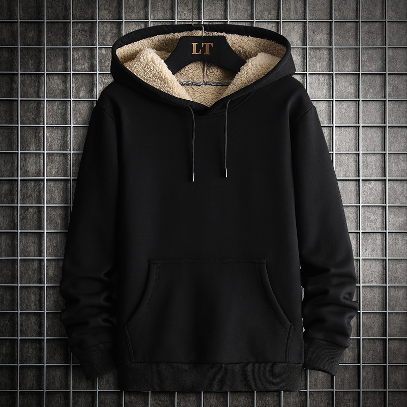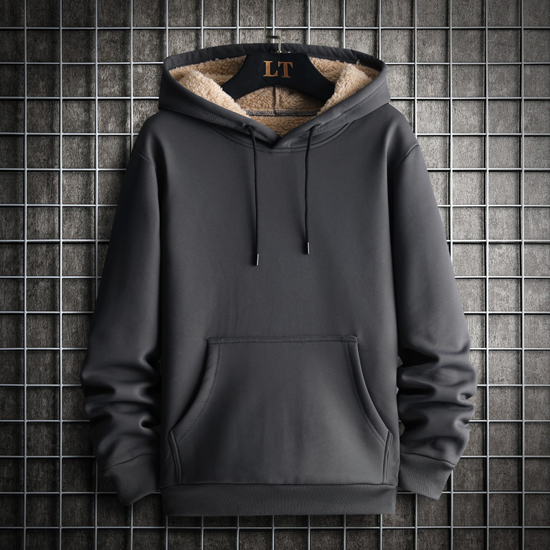 Главная страница > Трансграничный модный бренд, однотонный зимний свитер, мужской универсальный свободный свитер с капюшоном New Street, теплый топ из овечьей шерсти