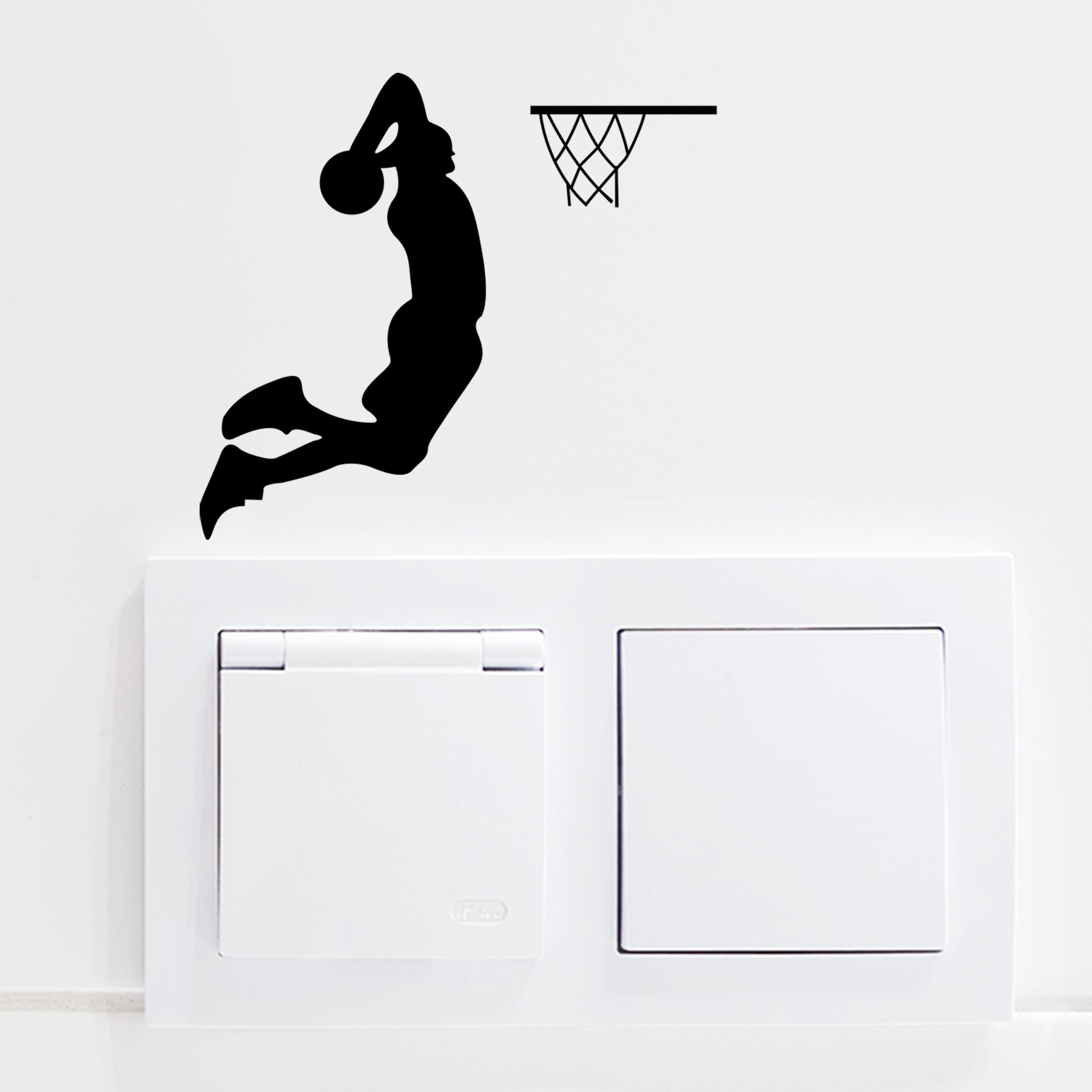 Изысканные декоративные наклейки на стену с изображением баскетболиста для спортзала и спальни, маленькие наклейки, съемные, для международной торговли JS255